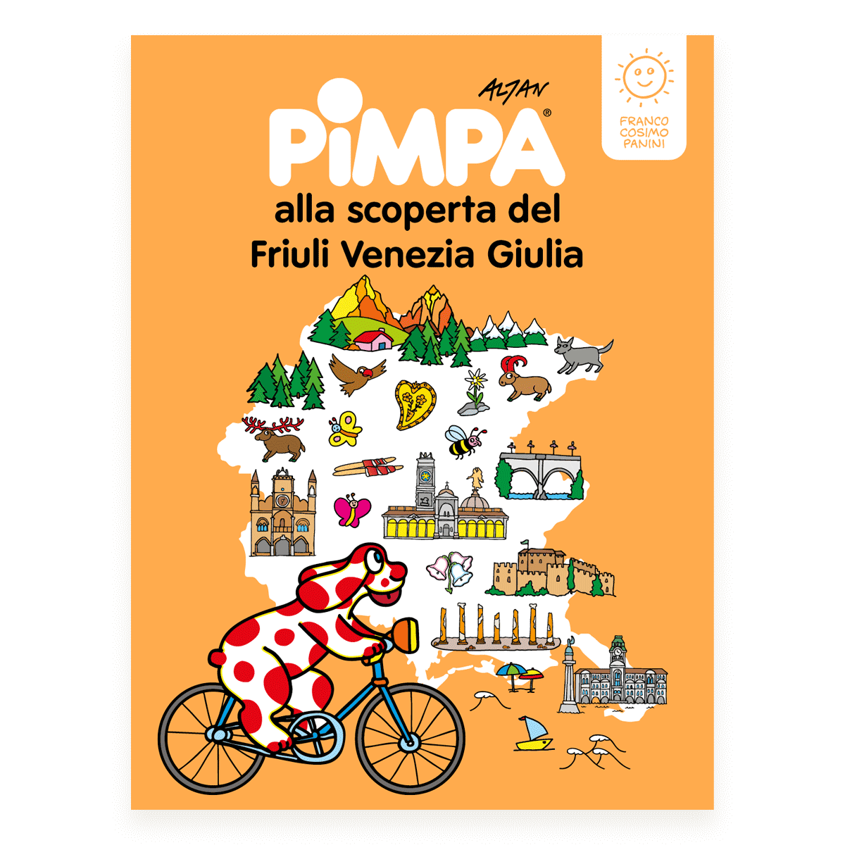 La cagnolina più amata dai bambini, Pimpa, torna come guida curiosa in un viaggio attraverso il Friuli Venezia Giulia, regione in cui natura, storia e arte dialogano da secoli. Trieste con i suoi musei, Gorizia e il suo castello, la stella perfetta di Palmanova, Udine con la Loggia del Lionello, i ponti magici di Cividale, Pordenone e i suoi borghi, fino ai paesaggi di Marano Lagunare e all’eredità romana di Aquileia: un itinerario sorprendente, raccontato con la consueta intelligenza di Altan. Curiosità, giochi, quiz e attività da svolgere con matita alla mano trasformano la scoperta del territorio in un’esperienza partecipata e divertente. Un piccolo atlante illustrato che fa venire voglia di partire subito.