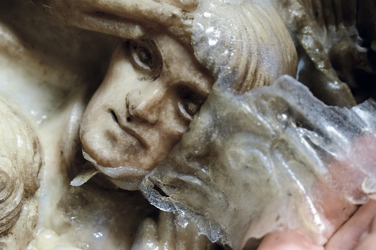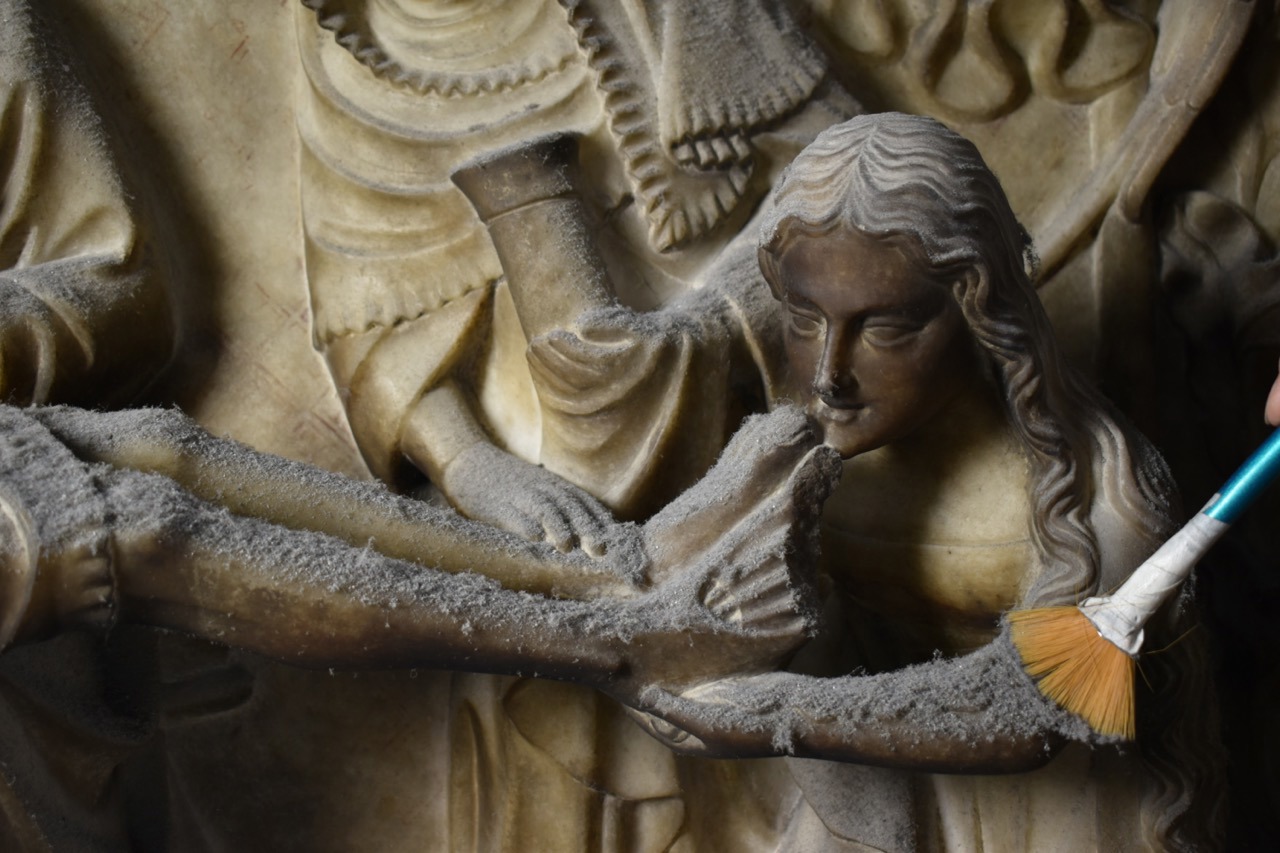 Un momento della pulitura con agar della Sacrestia Capitolare del Duomo di Milano. Marilena Anzani © Aconerre