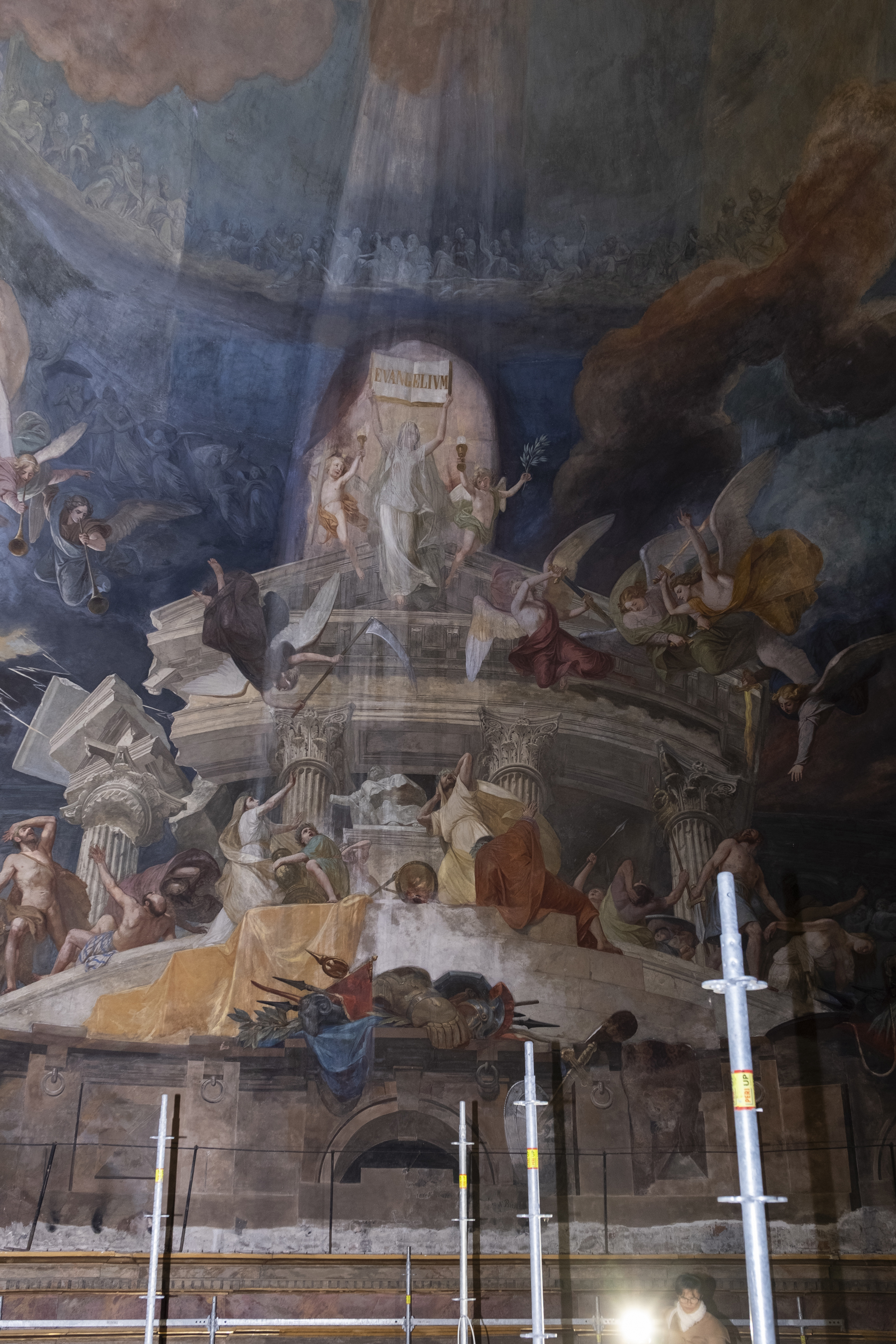 I ponteggi per il restauro degli affreschi della cupola della Basilica Mauriziana. Photo: Silvano Pupella