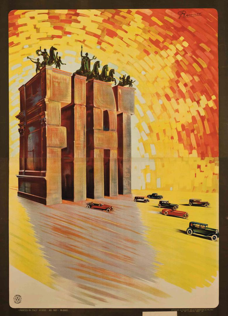 Il percorso si apre su un’Italia che, all’indomani della Prima guerra mondiale, cerca nella figura di Benito Mussolini la promessa di un ordine ritrovato e di una rinascita imperiale. Le scoperte archeologiche di quegli anni alimentano il mito di un Terzo Impero Romano e figure come Margherita Sarfatti e Gabriele D’Annunzio contribuiscono a forgiare l’immaginario del regime. L’immagine diventa un potente strumento di costruzione del consenso: manifesti, film, illustrazioni e campagne pubblicitarie creano un codice simbolico capace di definire la nuova identità del Paese, intrecciando modernità, estetica e ideologia. L’identità italiana era tutta da costruire e non era solo attraverso i manifesti politici che lo si faceva: in mostra ci sono anche manifesti di pubblicità commerciali di aziende come la Fiat che riprendevano l’estetica come sinonimo di orgoglio nazionale in una grande operazione di marketing della giovane nazione.