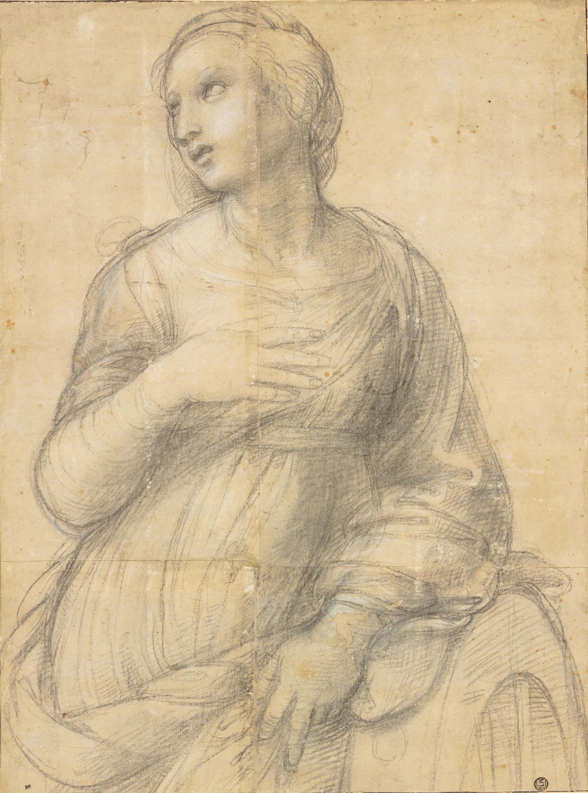 Raffaello, «Santa Caterina di tre quarti (Cartone per il dipinto della National Gallery, Londra)», 1507 ca, Parigi, Musée du Louvre. © RMN-Grand Palais / Art Resource, Ny. Foto: Michel Urtado