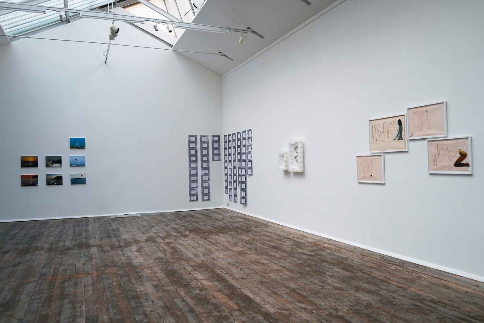Fino al prossimo 13 marzo, dunque, considerate lo Spazio Maria Calderara anche alla stregua di una galleria: in mostra il raro polistirolo «Mare» (1974), esempio precoce di utilizzo di materiali poveri come strumento di indagine della condizione femminile e, accanto, i rari «Grafici di storie d'amore» (1972-1973), disegni a pennarello su carta millimetrata in cui Binga, con il suo consueto sarcasmo, diagramma l'andamento delle relazioni sentimentali e le percezioni connesse: una delle produzioni meno conosciute dell'artista, mai state esposte dagli anni '80 a oggi, ricorda Tiziana di Caro. Più vicine ai nostri giorni invece «Lacrime di Sirena», (2017-2020), collage nati da un dialogo epistolare per immagini durante le estati degli scorsi anni, «Vorrei essere un vigile urbano», (1995), e «Diario romano 1895-1995», (1995-2020).