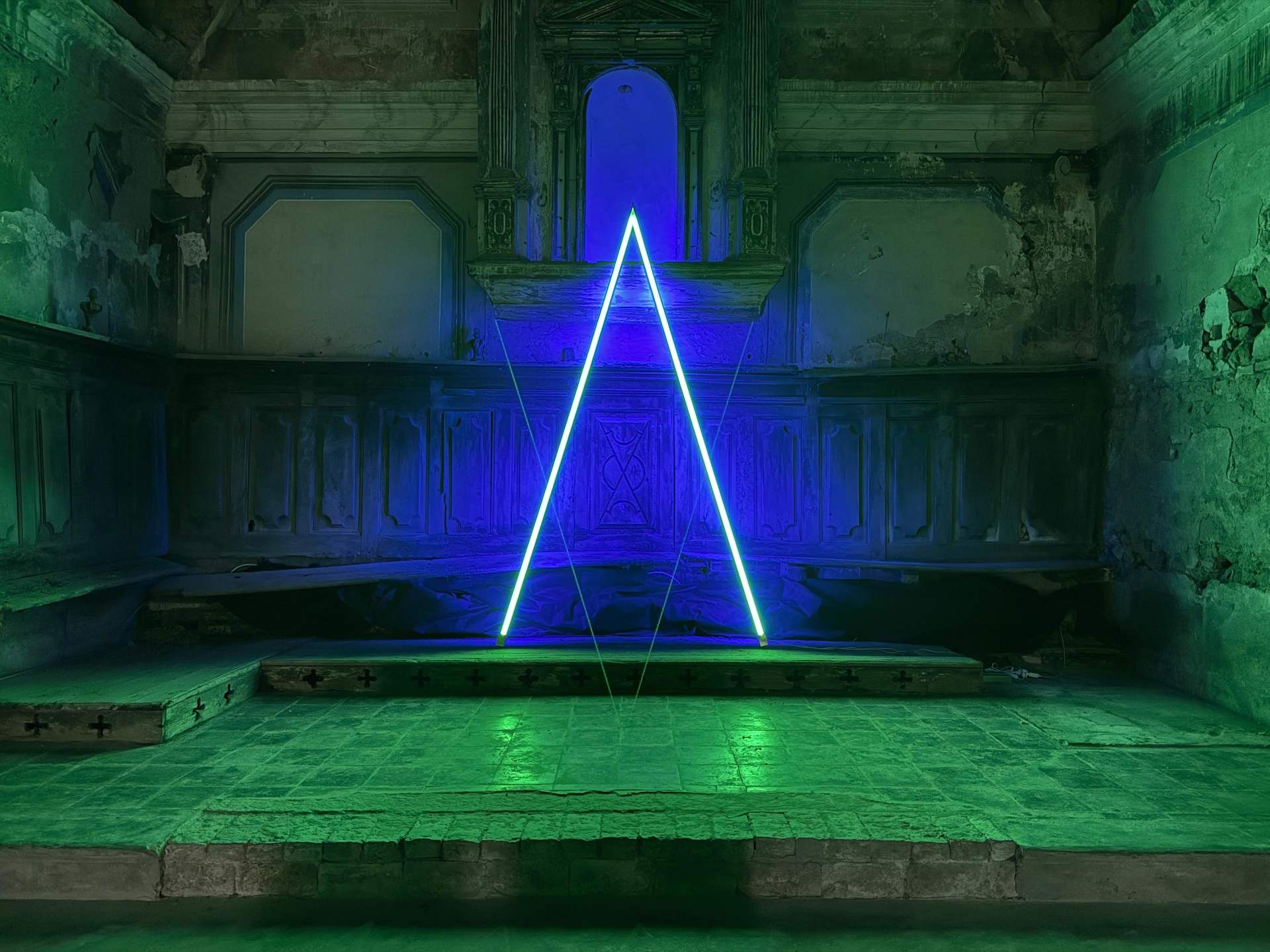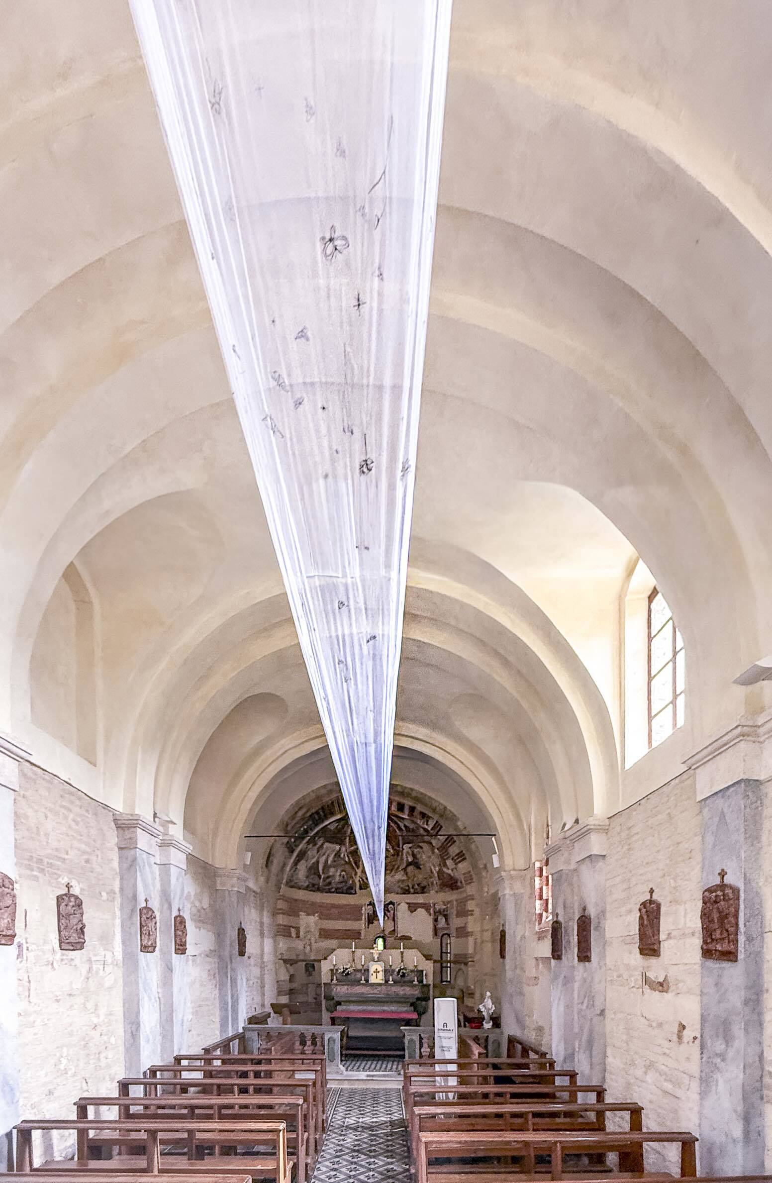 Emilio Ferro, «Direction to Langhe, Green and Blue», 2024 (chiesa dei Battuti a Vignale Monferrato, Alessandria)