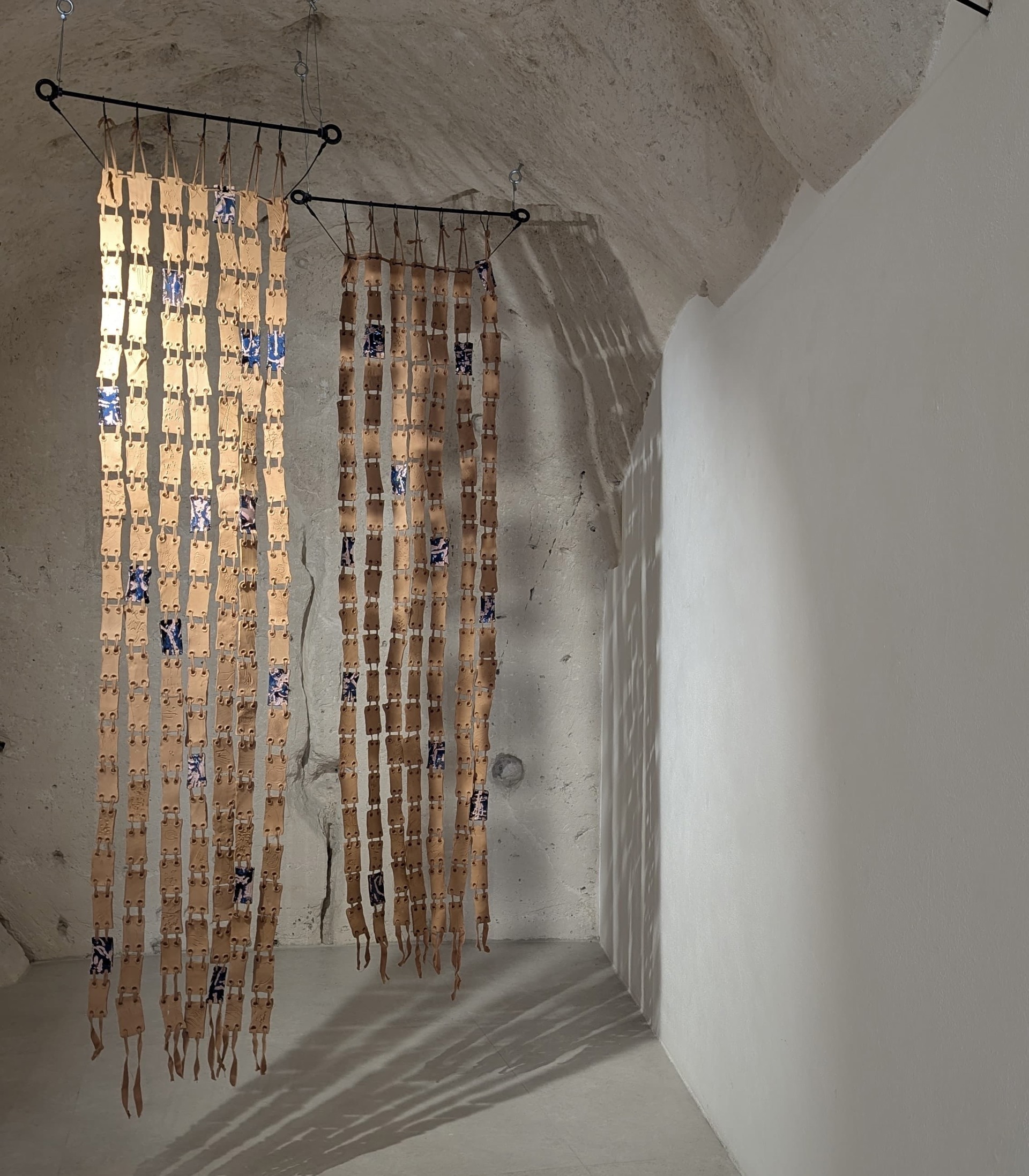 Quale miglior location per ospitare «Remain(s)», la mostra a cura di Antonella Marino, in cui si dipana la riflessione dei due giovani artisti, Michela Rondinone (Matera 1999) e Luca Granata (Cosenza 1999), sul concetto di «resti»(fino al 26 maggio 2026)?  Il termine è inteso sia come frammento materiale di ciò che è rimasto del passato, sia come riferimento al verbo «rimanere», quale processo attivato da un’azione volontaria, la «restanza» – come scrive la curatrice. Il neologismo si riferisce al concetto teorizzato dall’antropologo calabrese, Vito Teti, che fotografa la scelta, critica e politica insieme, di mantenere saldo il legame con il proprio territorio. Per prendersene cura, reinventarlo, rigenerarlo e preservarlo per quanti decidono di restare, ma anche per chi potrebbe tornare, un giorno.