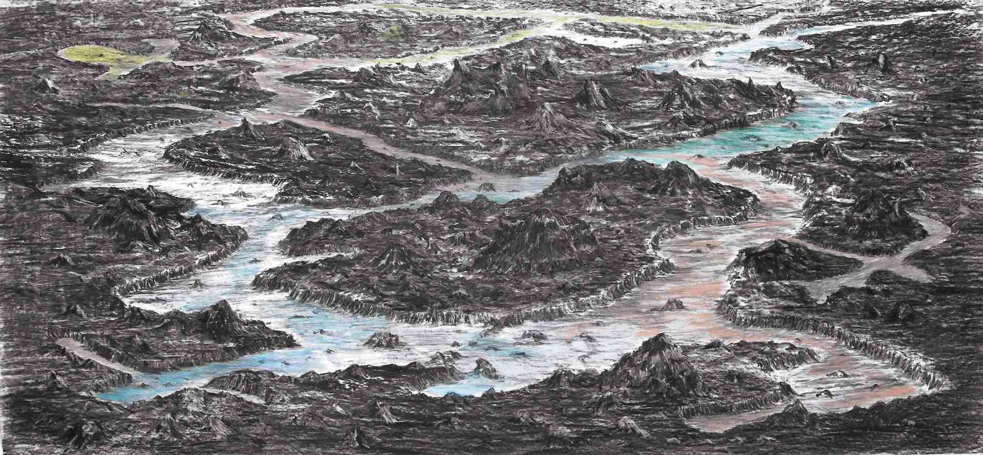 Un altro paesaggio, a un’altra latitudine, che però riporta a quelle distese che lo stesso artista ci racconta come «sue», appartenenti tanto alla propria poetica quanto alla biografia: «In un certo senso, nei miei disegni c’è una reminiscenza delle prime lande desolate che vidi nella mia vita nel Sud dell’Argentina: da lì scaturisce un immaginario che si è sviluppato in modo fittizio e fantastico, dove possono apparire elementi molto diversi da quel germe paesaggistico, ma si ritorna sempre a quelle prime immagini». Quel che è certo, tra le altre interpretazioni possibili, è che il sale e il carbone potrebbero rimandare a mari e territorio... forse anche a una certa idea di Venezia, la città-icona di quella Biennale dove tutti vorrebbero essere. «Ci sara anche una serie di componenti aggiuntivi che saranno parte fondamentale dell’opera, anche se su questo punto stiamo ancora lavorando perché si tratta di un lungo processo in cui avvengono molti cambiamenti in corso d’opera, conclude l’artista. Sono certo che l’intervento degli spettatori, alla fine della Biennale, avrà trasformato “Monitor Yin Yang” nel suo miglior stato».