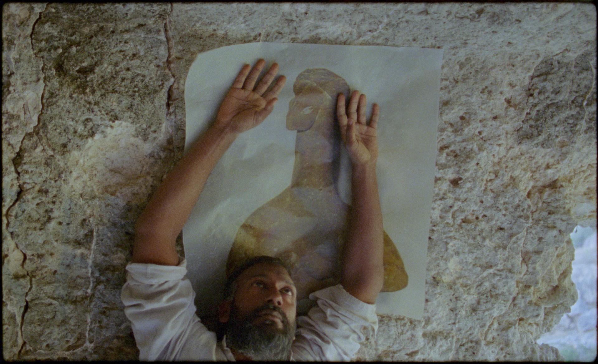 L’installazione si sviluppa in due stanze, trasformate in black cube da un allestimento di Marija Olšauskaitė, e ospita tre schermi: due con il materiale girato in Puglia e uno con quello del museo. Le scene, modellate dagli interni museali e dalla costa pugliese punteggiata di grotte e sepolture acquatiche, si dispiegano come movimenti rituali: preghiere animiste guidate dalla voce dell’artista, in dialogo con la conformazione naturale del territorio e i resti del passato. Piccole divinità antropomorfe, riprodotte in 3D o come fotocopie, diventano luoghi devozionali per coreografie tremanti, che evocando stati di trance, estasi e abbandono. Alla domanda su quale sia il fulcro del suo lavoro oggi, Budvytytė risponde: «Da tempo mi occupo della preghiera improvvisata al di fuori dei dogmi religiosi, e torno continuamento su questo tema: con il mio team di performer ho esplorato territori di devozione e venerazione legati all’animismo, all’erotismo, ai paesaggi e al corpo. E alla voce. Spero che, guardando il film, conclude l’artista, nei visitatori emerga qualcosa, forse lacrime o un tremito. Vorrei che la vibrazione del film attraversasse i loro corpi, così com’è accaduto a noi durante le prove».
