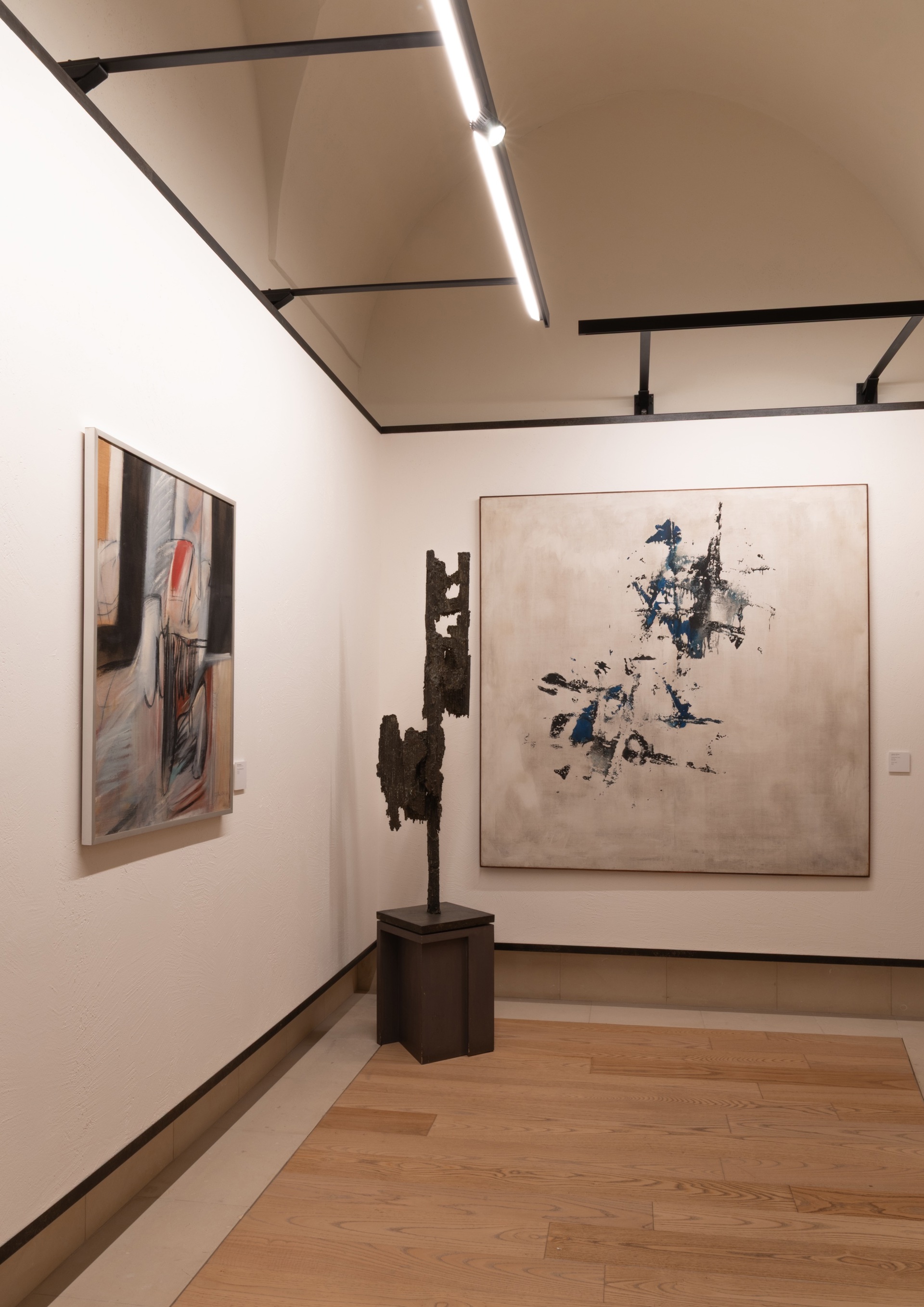 Da sinistra, opere di Bepi Romagnoni e Umberto Milani. © Bruno Bani Courtesy Fondazione Biscozzi | Rimbaud