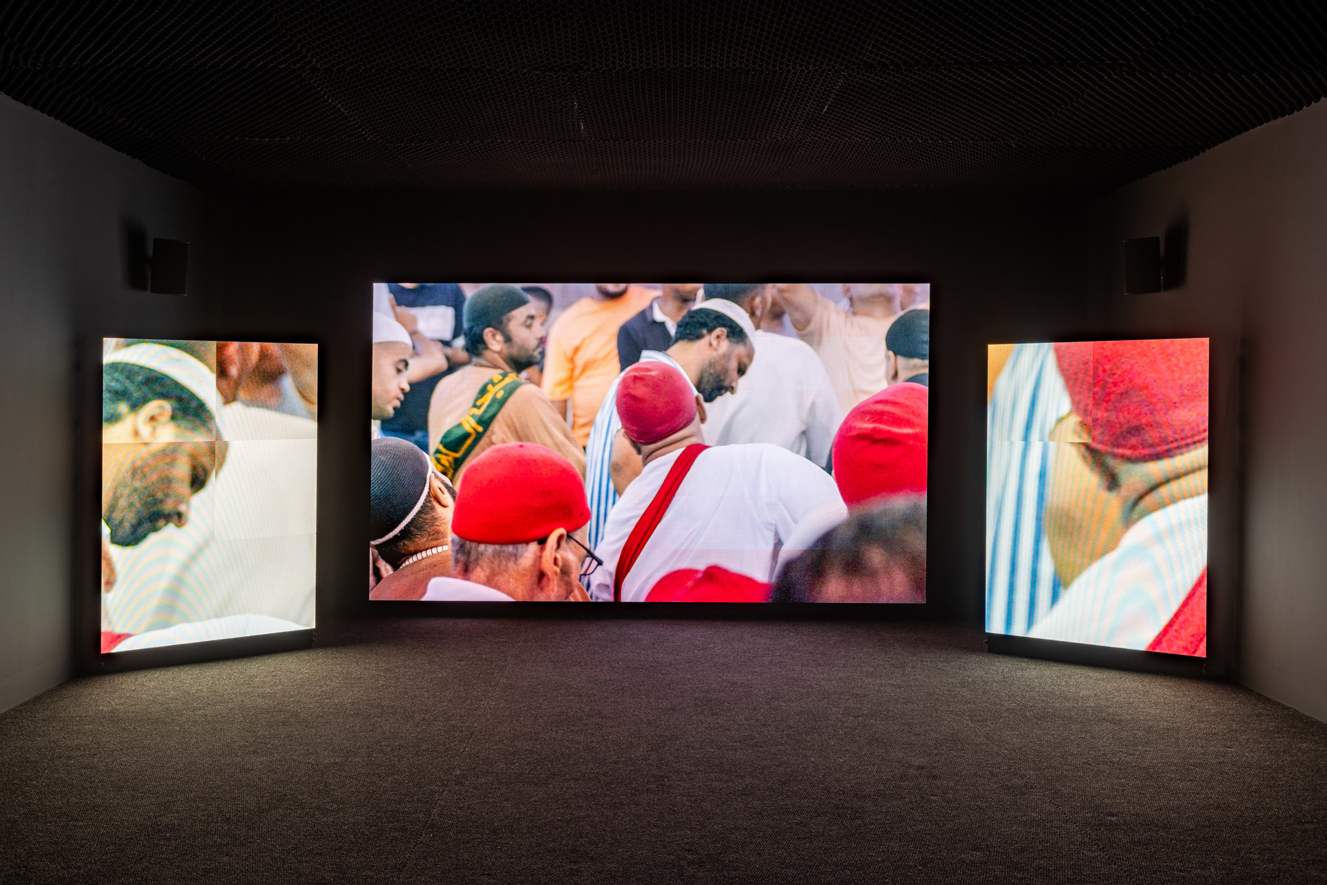 Molti degli artisti di origini arabe presenti in mostra oggi non vivono più nelle proprie terre, in una diaspora che li vede spesso residenti in Paesi occidentali. Un processo di dislocazione e memoria che viene ben raccontato dalla libanese Stéphanie Saadé, che con la serie «Pyramid» stratifica vestiti di diverse taglie, dalla più grande alla più piccola: la scultura tessile è insieme estremamente intima e disturbante nel restituire una percezione tattile del tempo che passa attraverso l’utilizzo di un oggetto così personale.