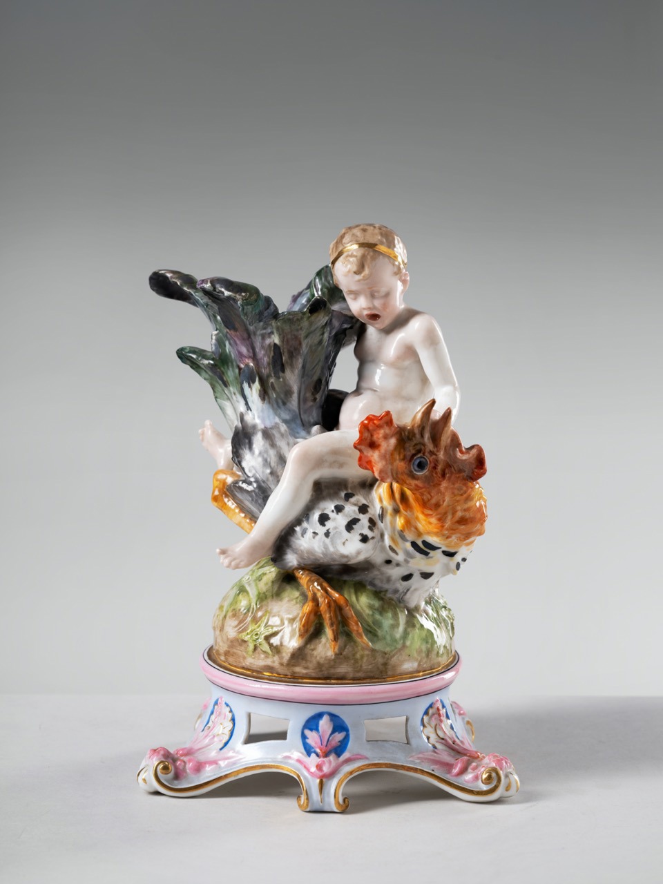 Manifattura Ginori e Urbano Lucchesi (ideazione), Portafiori a forma di putto che cavalca un gallo, 1890 ca, Sesto Fiorentino, Museo Ginori