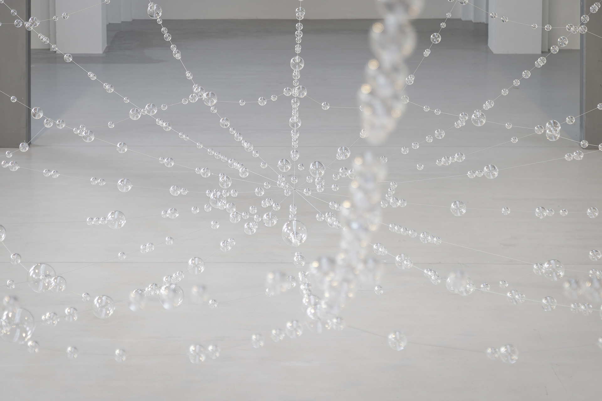 Instabilità, pericolo e fragilità sono i vettori concettuali attorno a cui si articola «Over, under and in between», il nuovo progetto espositivo di Mona Hatoum (Beirut, 1952), che invita a riflettere sulla precarietà dell’esistenza e sulle tensioni del presente. Al centro della mostra, tre installazioni autonome ma interconnesse esplorano altrettanti elementi chiave del vocabolario visivo dell’artista: la ragnatela, la mappa e la griglia. Motivi ricorrenti nella sua ricerca, qui declinati con diversi gradi di intensità e sensibilità, capaci di evocare stati di allerta e vulnerabilità.