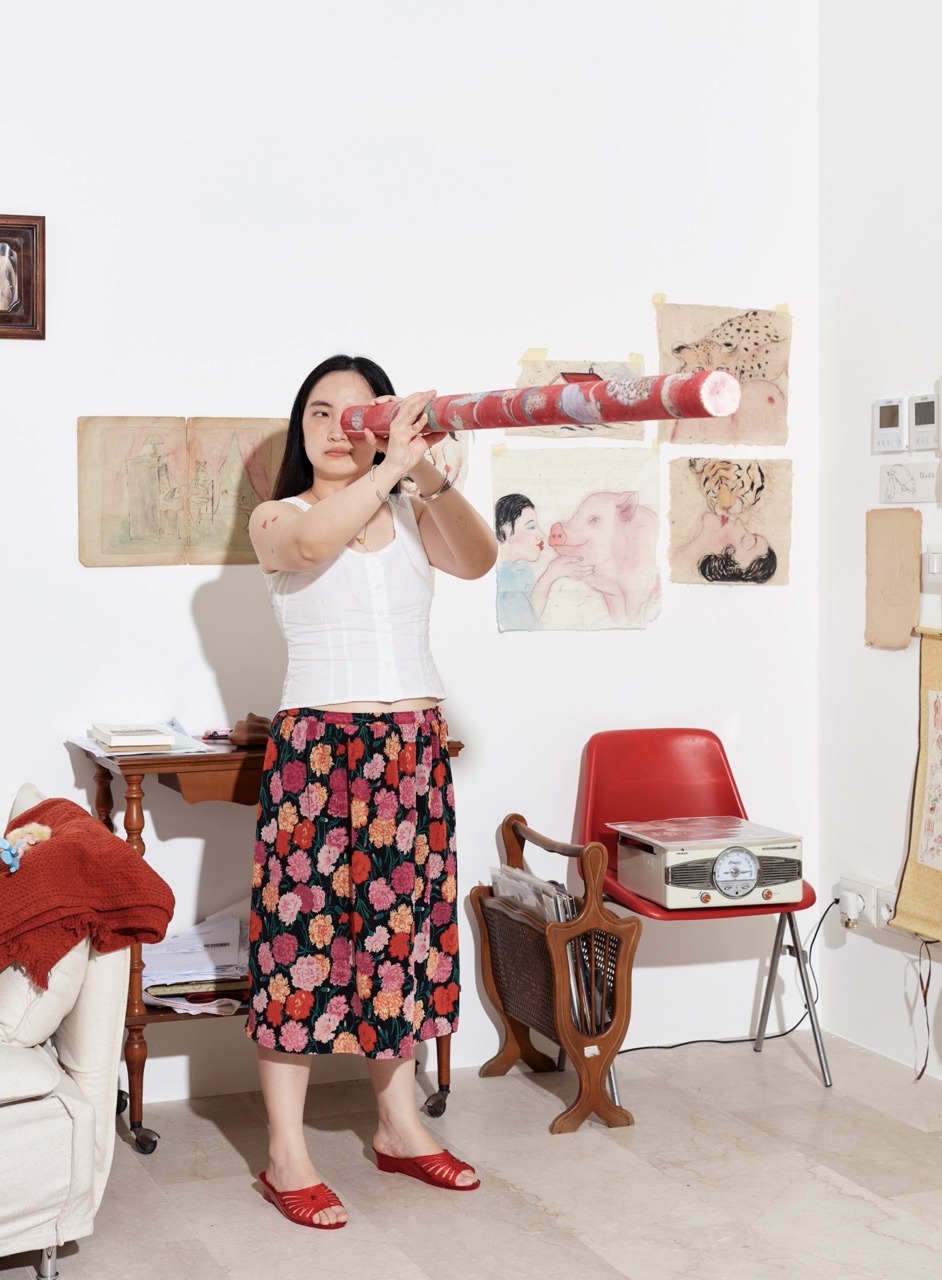 (ShaoXing, Cina, 1989) vive e lavora a Bologna. Diplomatasi in Scenografia alla ChongQing University (2013), si laurea in Arti Visive all’Accademia di Belle Arti di Bologna (2020) e vince il Premio Talento Fondazione Zucchelli per l’Arte (2019). La sua pittura mescola umorismo, erotismo e simbolismi orientali. Recenti personali includono «It is Better to be Cats than be Loved» (Londra, 2022) e «I Am Still Me» (Göteborg, 2023). Ha partecipato a fiere come Paris Internationale e Frieze London e a collettive al Centro per l’arte contemporanea Luigi Pecci di Prato e Tokonoma di Kassel.