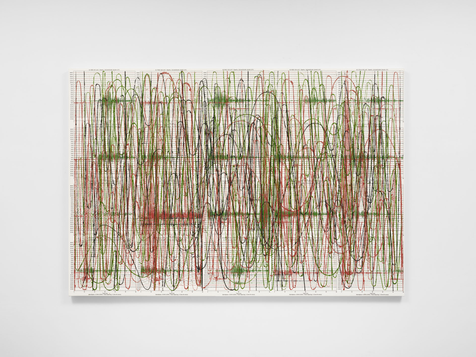 Leggi i suoi articoliVentisei secondi. È questo l’intervallo tra un battito e l’altro. La Terra pulsa. Lo chiamiamo Earth’s Pulse: un microtremore regolare, debole, quasi impercettibile, ma misurabile dai sismologi di tutto il mondo. Non scuote palazzi. Non fa rumore. Eppure attraversa continenti, silenzioso e persistente. Questo battito nascosto diventa lente e guida per la mostra «Sensing» di Allora & Calzadilla, alla Galerie Chantal Crousel di Parigi dal 29 novembre 2025 al 15 gennaio 2026. I due artisti portoricani esplorano il limite poroso tra percezione organica e misurazione tecnologica. Trasformano dati sismici e segnali invisibili in esperienze visive, corporee e poetiche. Non si limitano a mostrare ciò che può essere registrato: indagano ciò che può essere percepito. Flussi di emozione, intuizione e memoria emergono tra linee, luce e vetro. Ciò che sfugge alla misurazione tecnica, qui diventa esperienza condivisa. Al centro dello spazio espositivo c’è la serie Pulse (2025). Ogni opera parte da stampe di 24 ore del «pouls de la Terre», segnale sismico rilevato ogni 26 secondi dalle stazioni globali. I dati sono organizzati in griglie precise, ma non restano solo numeri o grafici. Sottili linee tracciate a mano attraversano i sismogrammi, introducendo nuovi marcatori temporali e connessioni estetiche.