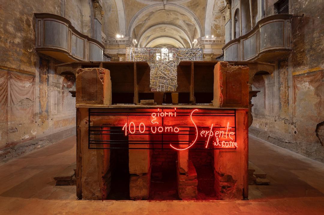 Nello spazio San Carlo fino al 13 gennaio è allestita la monumentale opera site specific del’artista toscano: «Così come una chiesa sconsacrata trattiene il sacro nella forma e nel silenzio, spiega, così le luminarie trattengono le luci anche da spente»