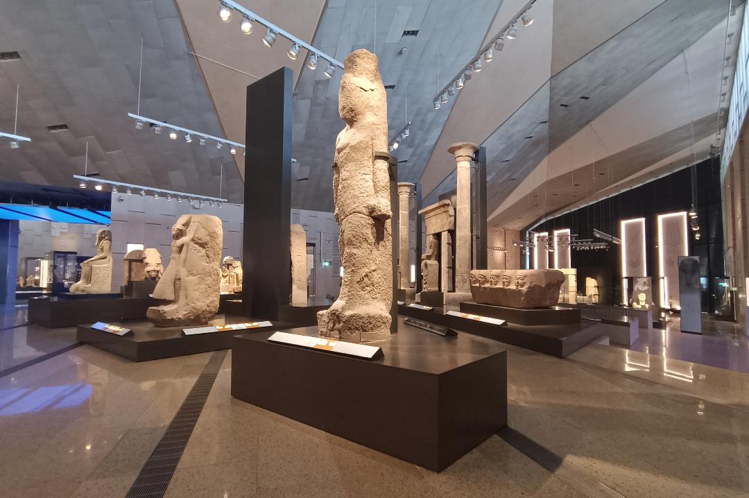 L’imponente edificio che sorge all’ombra delle piramidi di Giza, le cui forme sono continuamente reiterate, vanta 32mila metri quadrati di superficie espositiva inserita perfettamente nel paesaggio