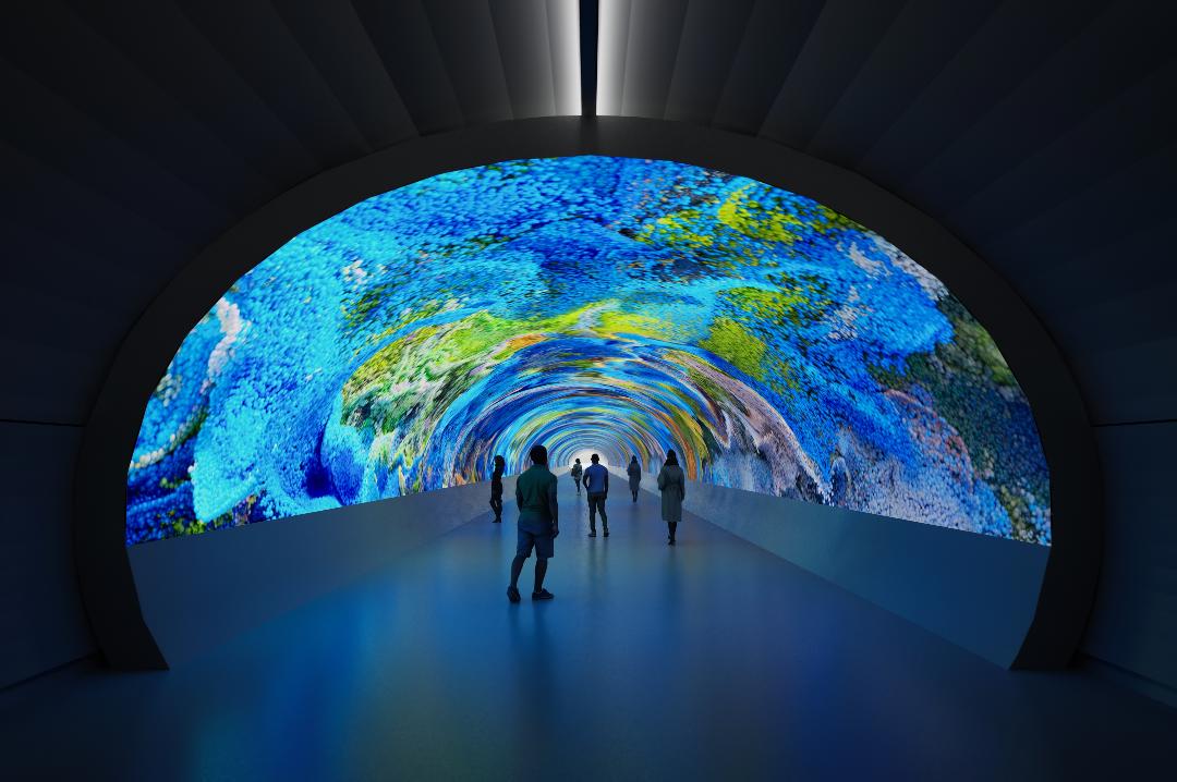 L’enorme installazione immersiva occupa 100 metri di percorso, per un totale di mille metri quadrati di superficie, della rinnovata Galleria Bombi, che diventerà la galleria digitale più grande d’Europa