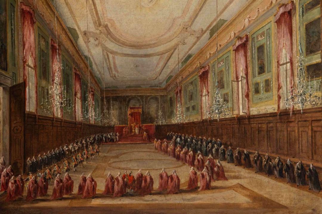 «Pio VI prende congedo dal Doge», stimato 220-320 mila euro, è un dipinto che porta con sé una storia fatta di grandi esposizioni e un vincolo ministeriale che la protegge dal 1987