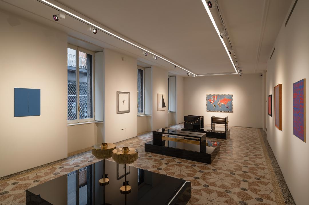 In occasione della Milano Art Week e del Salone del Mobile, la sede di Via Lanzone trasforma lo spazio d’asta in un ambiente abitativo dove i tagli di Fontana e le mappe di Boetti dialogano con gli arredi di Dimoremilano