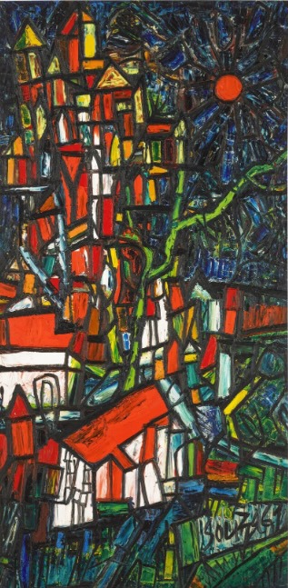 Francis Newton Souza «Untitled (Mountain with Houses)» è stato battuto a 2,3 milioni di dollari. Courtesy of Sotheby’s