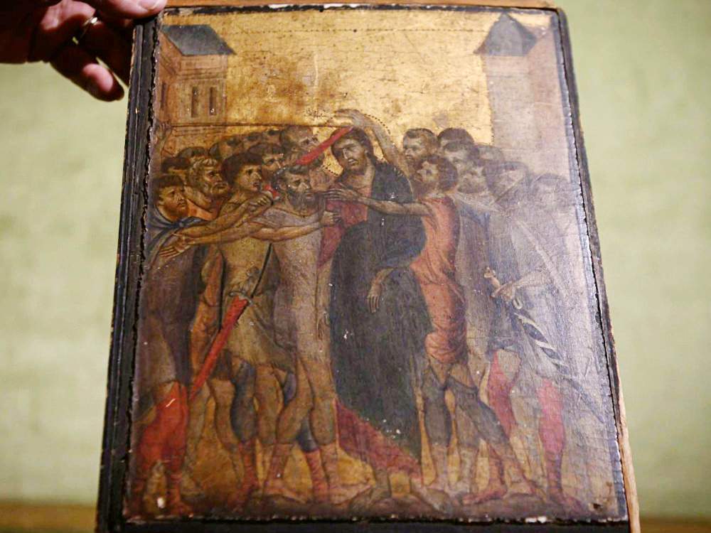 Leggi i suoi articoliParigi. Un’opera attribuita a Cimabue, scoperta in una casa di Compiègne, a nord di Parigi, il «Cristo deriso», dipinto con tempera a uovo su fondo oro su un pannello di legno di pioppo di piccole dimensioni (25,8x20,3 cm), è stato venduto all’asta il 27 ottobre dalla maison Actéon di Senlis per 24 milioni (la stima di partenza era di 4-6 milioni di euro).