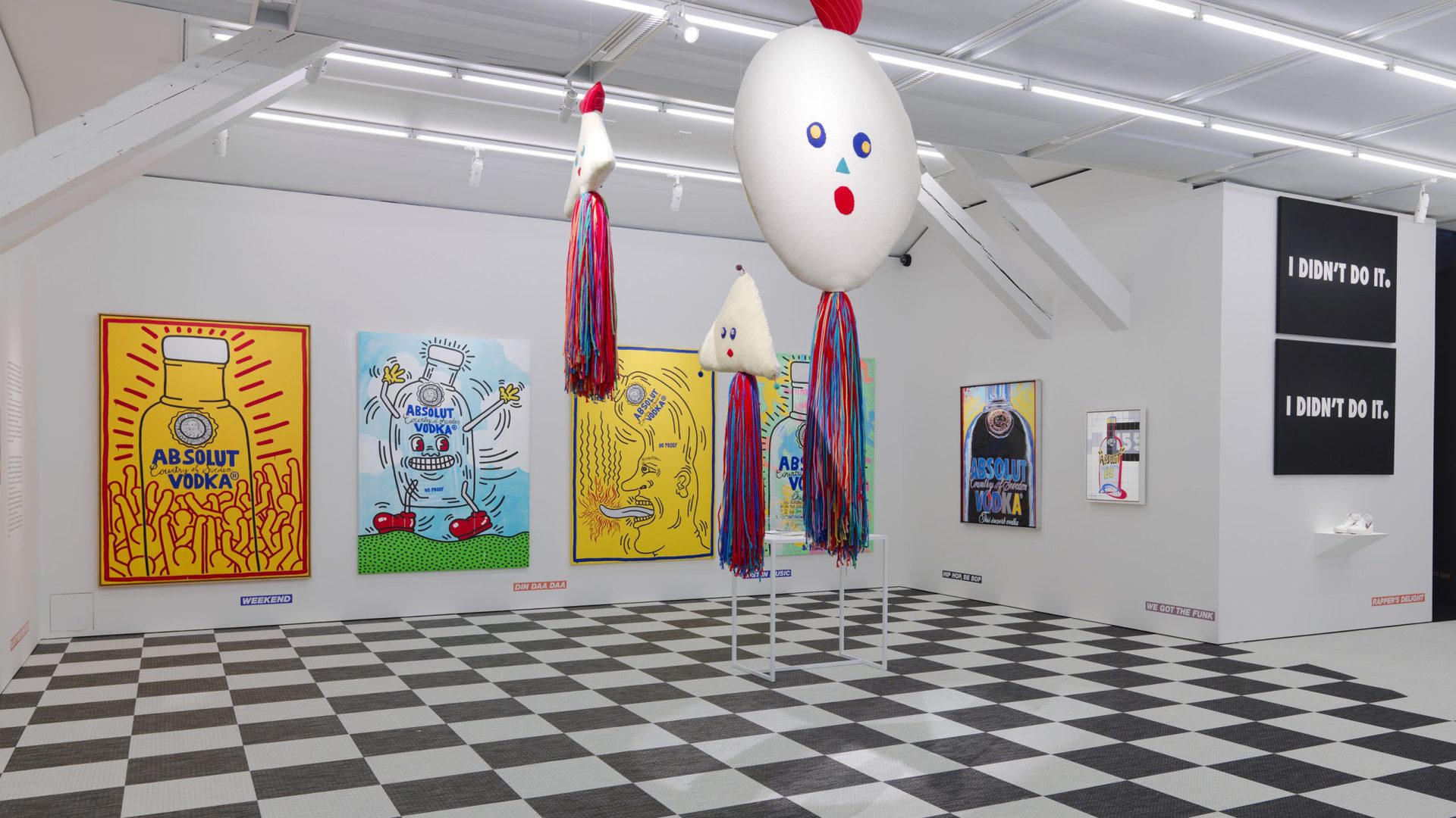 La prima opera realizzata per Absolut Vodka è Absolut Warhol (1986). Secondo la versione che circolava all’epoca, sarebbe stato lo stesso Andy Warhol a suggerire l’idea durante una cena, manifestando interesse per la bottiglia. L’interlocutore, l’importatore americano del marchio, avrebbe colto immediatamente la possibilità di coniugare l’identità di Absolut con l’arte contemporanea; Warhol indicò poi altri artisti con cui collaborare, tra cui Keith Haring e Kenny Scharf. Nelle opere di Keith Haring presenti in mostra, la bottiglia entra nel suo alfabeto visivo fatto di figure stilizzate, energia urbana e ritmo grafico, diventando parte di un immaginario legato alla street culture newyorkese degli anni Ottanta. Con Louise Bourgeois il registro cambia radicalmente: la bottiglia assume una dimensione più intima e ambigua, caricandosi di tensioni emotive e allusive, coerenti con la sua riflessione su corpo, memoria e vulnerabilità. David Shrigley ne fa un oggetto ironico e destabilizzante, utilizzato per scardinare le aspettative della comunicazione pubblicitaria. La forza della Absolut Art Collection risiede nella sua eterogeneità dichiarata. Artisti di fama internazionale convivono con nomi locali meno noti; linguaggi alti e registri pop si sovrappongono senza gerarchie. Al suo interno emergono nuclei che raccontano luoghi e momenti storici precisi: la scena dei writer newyorkesi degli anni Ottanta, artisti russi che reagiscono alla censura durante la dissoluzione dell’Unione Sovietica, una significativa presenza di artisti afroamericani, fino agli Young British Artists degli anni Novanta. Tre decenni in cui Absolut Vodka si è trasformata in committente, costruendo un archivio dell’evoluzione dei linguaggi dell’arte contemporanea internazionale.