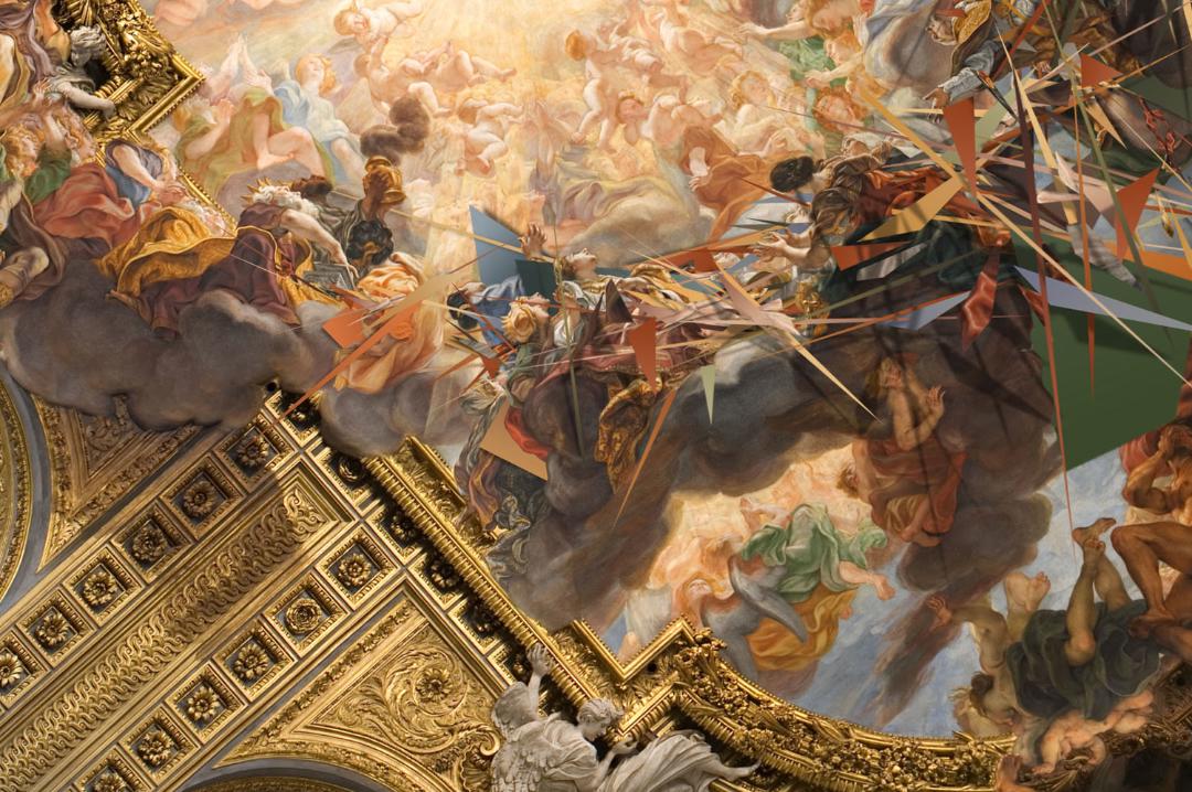 Sul grande ledwall di Palazzo Citterio, l’installazione video dell’artista romano reinterpreta la volta della Chiesa del Gesù a Roma attraverso variazioni algoritmiche
