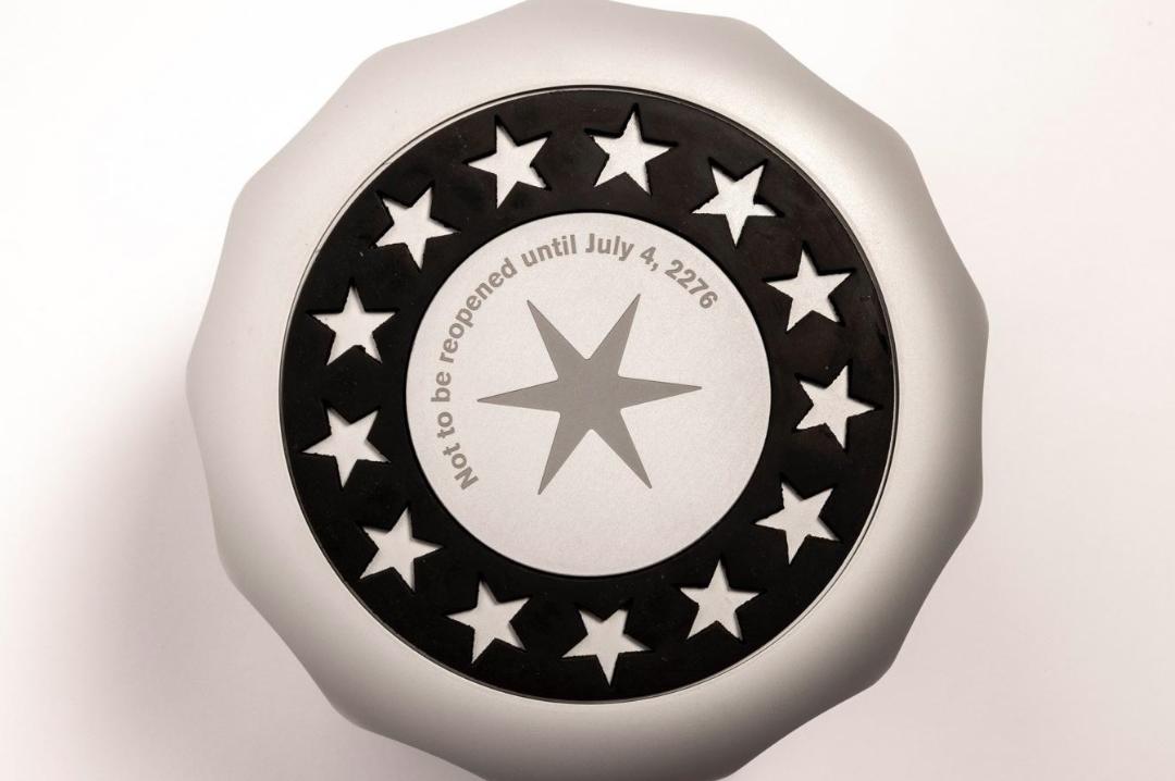 Nel contenitore, che sarà interrato sotto la statua di George Washington nella capitale federale e potrà essere disigillato solo nel 2276, lettere e proclami di alti funzionari degli Stati Uniti e del Regno Unito, progetti studenteschi vincitori di un concorso, una targa incisa da Foster, della terra proveniente dalla dimora britannica della famiglia del primo presidente degli Stati Uniti