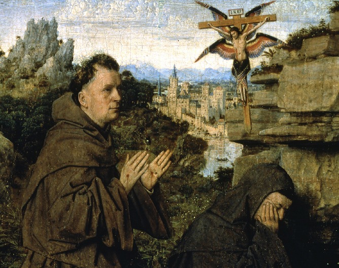 Particolare di «San Francesco riceve le stigmate», di (?) Jan van Eyck. Torino. Galleria Sabauda