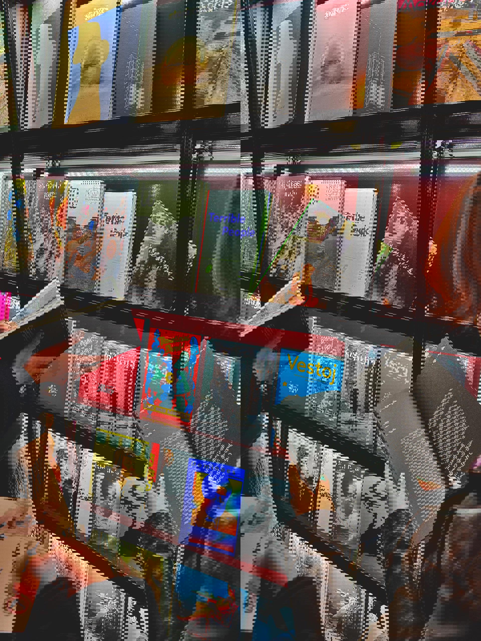Potrei dirti che è tutte queste cose insieme. Al livello più superficiale e visibile, Frab’s è un negozio specializzato in riviste di nicchie, ma dietro però c’è ben altro. Innanzitutto, un lavoro enorme di curatela che portiamo avanti dal 2019 e che ci ha resi uno dei punti di riferimento europei dell’editoria periodica indipendente, con una selezione di oltre mille titoli da tutto il mondo. Ma Frab’s è anche un archivio, un giorno spero pubblico e accessibile e non chiuso tra le pareti di casa mia, e un dispositivo analogico di ricerca, che ogni giorno viene abitato da studenti e creativi in cerca di ispirazioni e strumenti. È anche una piattaforma critica, perché attraverso la selezione e le attività culturali facciamo informazione e restituiamo una visione che prova a essere il più possibile plurale. E poi, forse soprattutto, è un luogo di incontro e condivisione, uno spazio vivo fatto di eventi e persone che li animano.