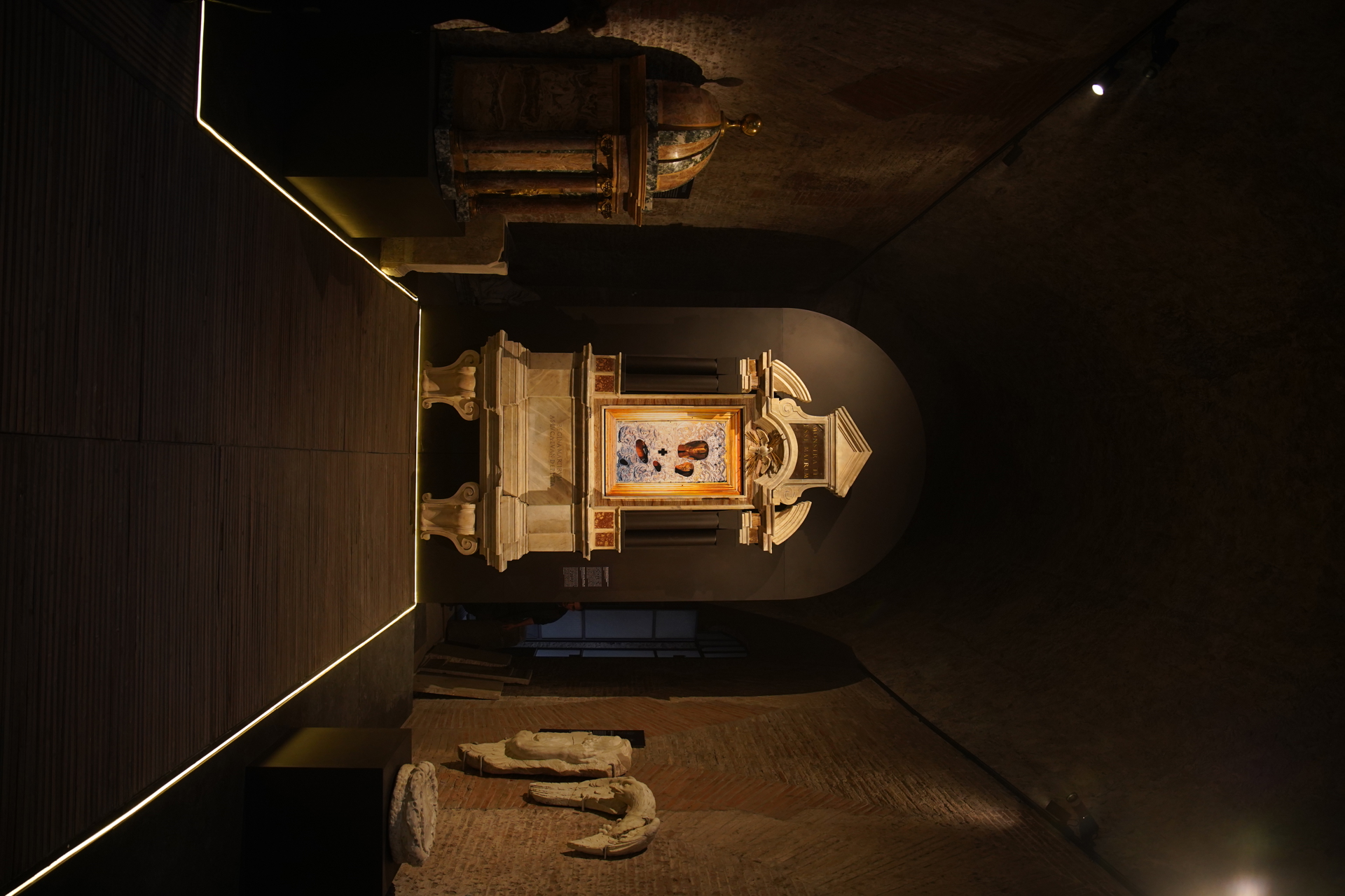 Il direttore ad interim del Pantheon, Luca Mercuri, ha illustrato laterizi, elementi architettonici e frammenti decorativi, che contribuiscono a chiarire la successione cronologica delle trasformazioni del complesso. Presente alla serata, Massimo Osanna, direttore generale dei Musei, che ha evidenziato come il percorso «consente di riconoscere la lettura stratigrafica delle fasi costruttive del Pantheon e di inserirle nel più ampio processo evolutivo della città, dal periodo repubblicano all’età contemporanea. È un viaggio nel tempo perché qui ritroviamo materiali incredibili che ricostruiscono le fasi storiche del Pantheon ma anche di Roma», citando le decorazioni originali della Basilica di Nettuno utilizzata all’inizio come contrafforte del monumento.