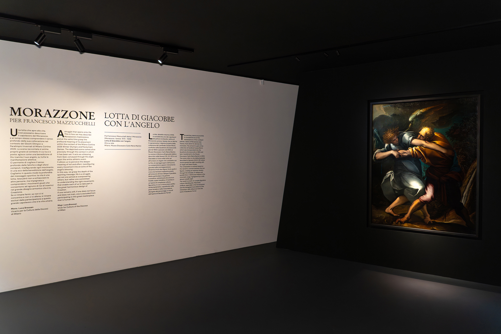 Esporre la «Lotta di Giacobbe con l’angelo» nei padiglioni che ospiteranno alcune gare dei Giochi significa introdurre, dentro la macchina organizzativa dell’evento, una riflessione più ampia, che riguarda l’immaginario che una città costruisce attorno a sé. In questo caso, Fiera Milano sceglie di affiancare al racconto dell’efficienza e della performance quello della prova e della trasformazione, fisica e morale.