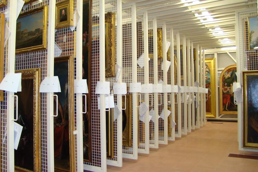 La prima fase, conclusasi a giugno 2013 dopo circa otto mesi di lavori, ha riguardato il restauro della Cavallerizza riplasmata dal primo architetto regio Ernesto Melano nel 1835 e sotto la giurisdizione del I Battaglione dell’Arma dei Carabinieri che ha sede nel Castello dal 1921. Inizialmente pensata come sala polifunzionale, è stata momentaneamente adibita a spazio per la conservazione delle opere della Galleria Sabauda, in attesa del definitivo trasferimento del museo nella Manica Nuova di Palazzo Reale di Torino previsto per il 2014. «Nel deposito di Moncalieri, ci informa la direttrice della Sabauda Anna Maria Bava, le opere, circa 5mila lavori di cui oltre 900 dipinti, 180 sculture e oreficerie, 60 mobili e arredi, 33 merletti, 22 arazzi e circa 3.800 stampe e disegni, sono state disposte, a seconda delle diverse tipologie, su griglie mobili o fisse in rete metallica, su scaffali, entro mobili e cassettiere (tranne le sculture in marmo che, in considerazione della loro delicatezza, si è preferito mantenere entro le proprie casse), per permettere la loro visibilità e un costante monitoraggio conservativo durante il periodo di permanenza nell’ambiente».