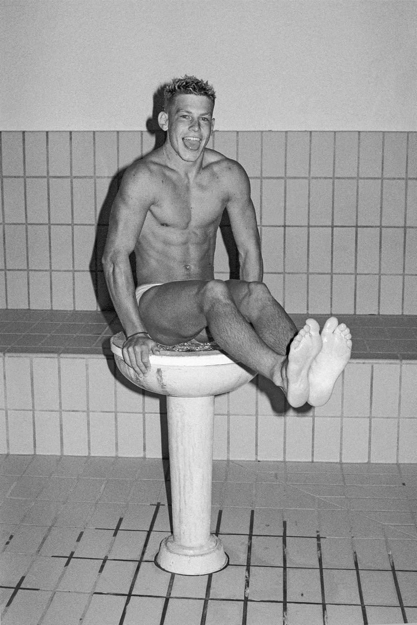 C’è un momento nella conversazione in cui parliamo di come funziona il desiderio davanti alla macchina fotografica — se è unidirezionale o circolare, se chi viene fotografato desidera a sua volta qualcosa, se la camera crea o svela o amplifica quello che già esiste tra due persone. Pfeiffer, che ha sempre fotografato soprattutto uomini giovani, e che si definisce con la massima naturalezza come qualcuno che «si innamora sempre degli etero», risponde: «Quando avevo la macchina e loro erano davanti a me, andava tutto bene. Prima… orribile». La camera come salvezza, come mediazione tra il desiderio e il senso di inadeguatezza che quel desiderio si portava dietro. La camera come distanza giusta: abbastanza vicini da sentire la corrente, abbastanza lontani da reggere l’intensità.