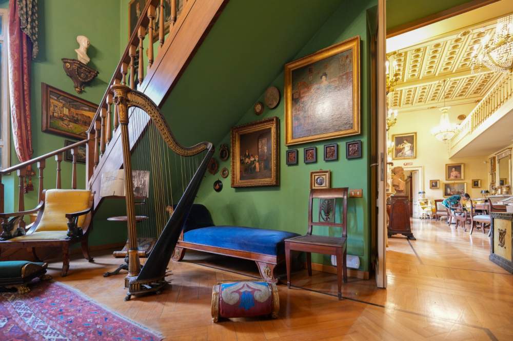 Il museo conta, in totale, oltre mille oggetti, di cui 800 esposti, disposti fra camere da letto, biblioteche, studio e camera da pranzo. Alle pareti degli ambienti trovano collocazione i tanti quadri, in cui sono frequenti vedute di interni ottocenteschi. In un raffinato gioco di specchi, nei dipinti è possibile scorgere alcuni oggetti e arredi conservati nella stessa casa museo. Ne è un esempio la grande arpa Erard, degli inizi del XIX secolo, collocata nello studio, accanto al dipinto di Ulisse Griffon «Damigella con arpa in un interno» (1833), in cui è riprodotto l’identico strumento musicale.