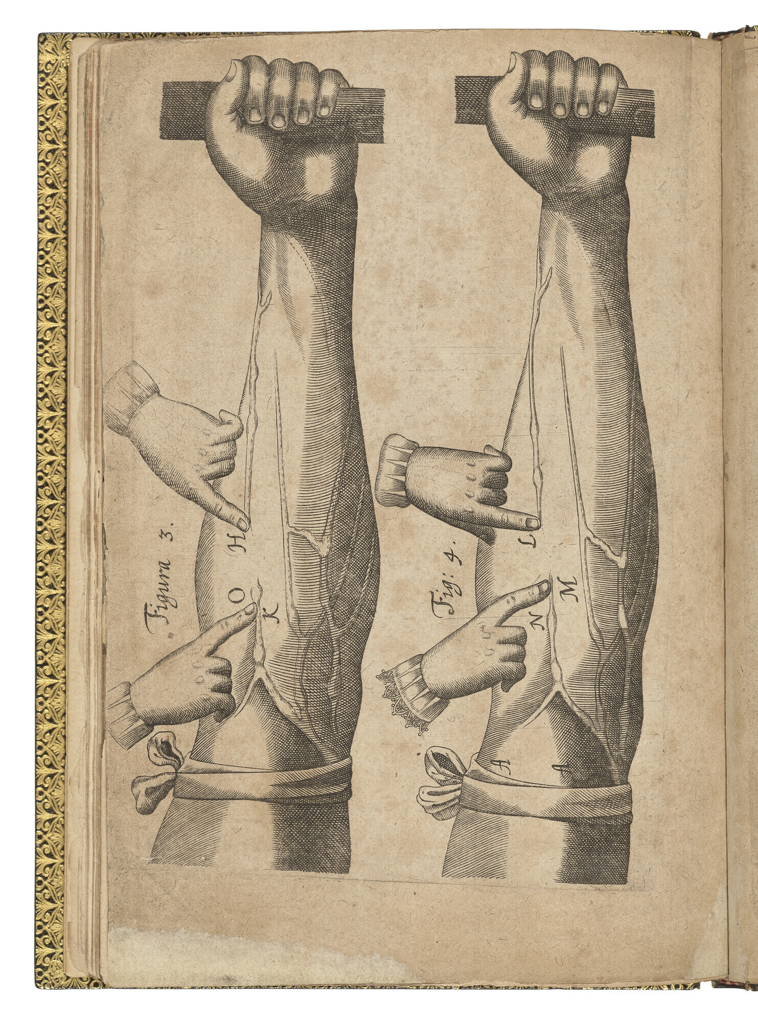 Exercitatio anatomica de motu cordis et sanguinis in animalibus (1628) di William Harvey. Courtesy of Christie’s