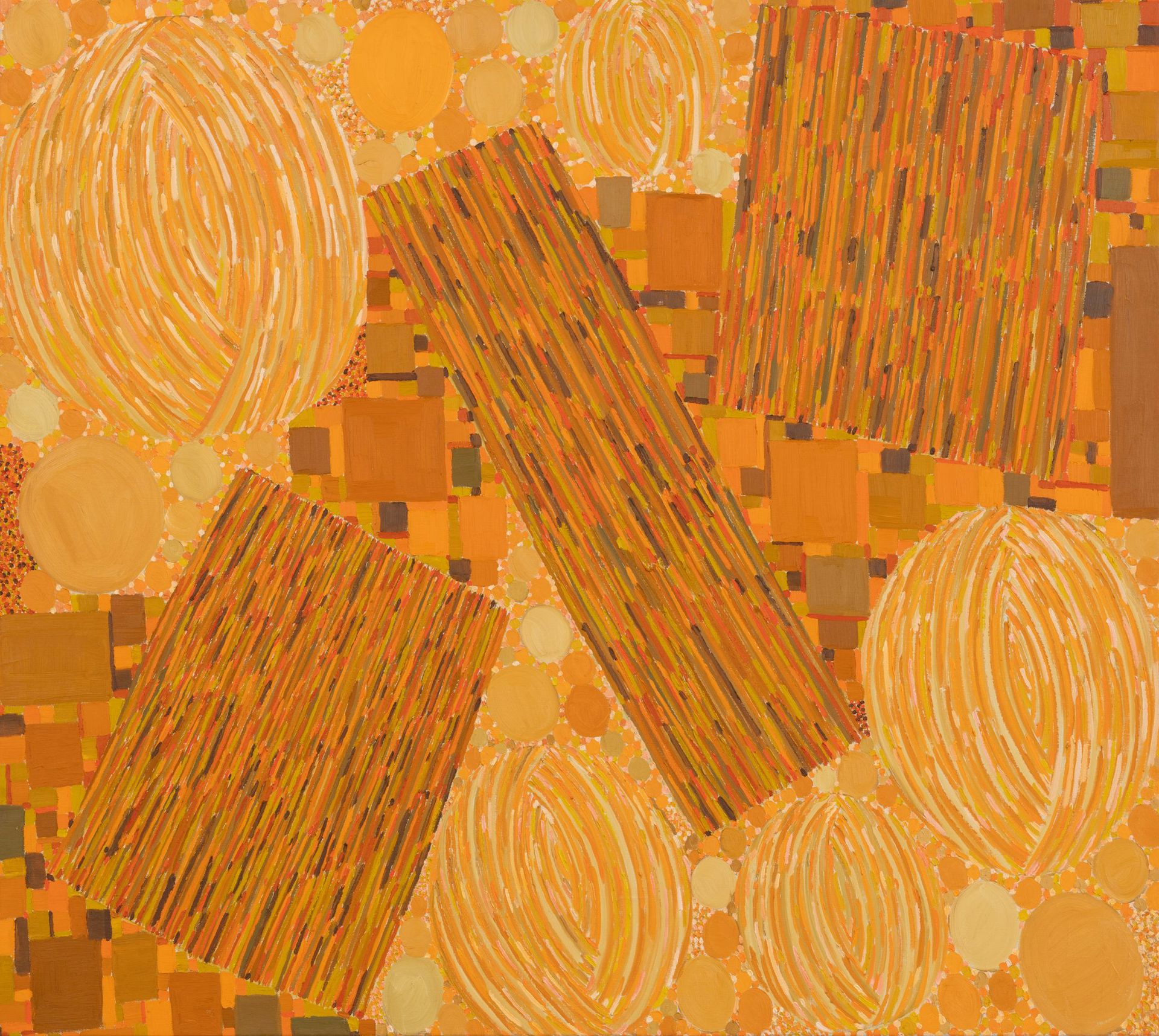 Lynne Drexler (1928-1999) Square Rigidty [Sic], 1976 Signed, titled, and dated on the verso: "Lynne Drexler / Square Rigidty / 76" Oil on linen 42 1/2 x 47 1/4 inches 108 x 120 cm © The Lynne Drexler Archive Courtesy Berry Campbell, New York