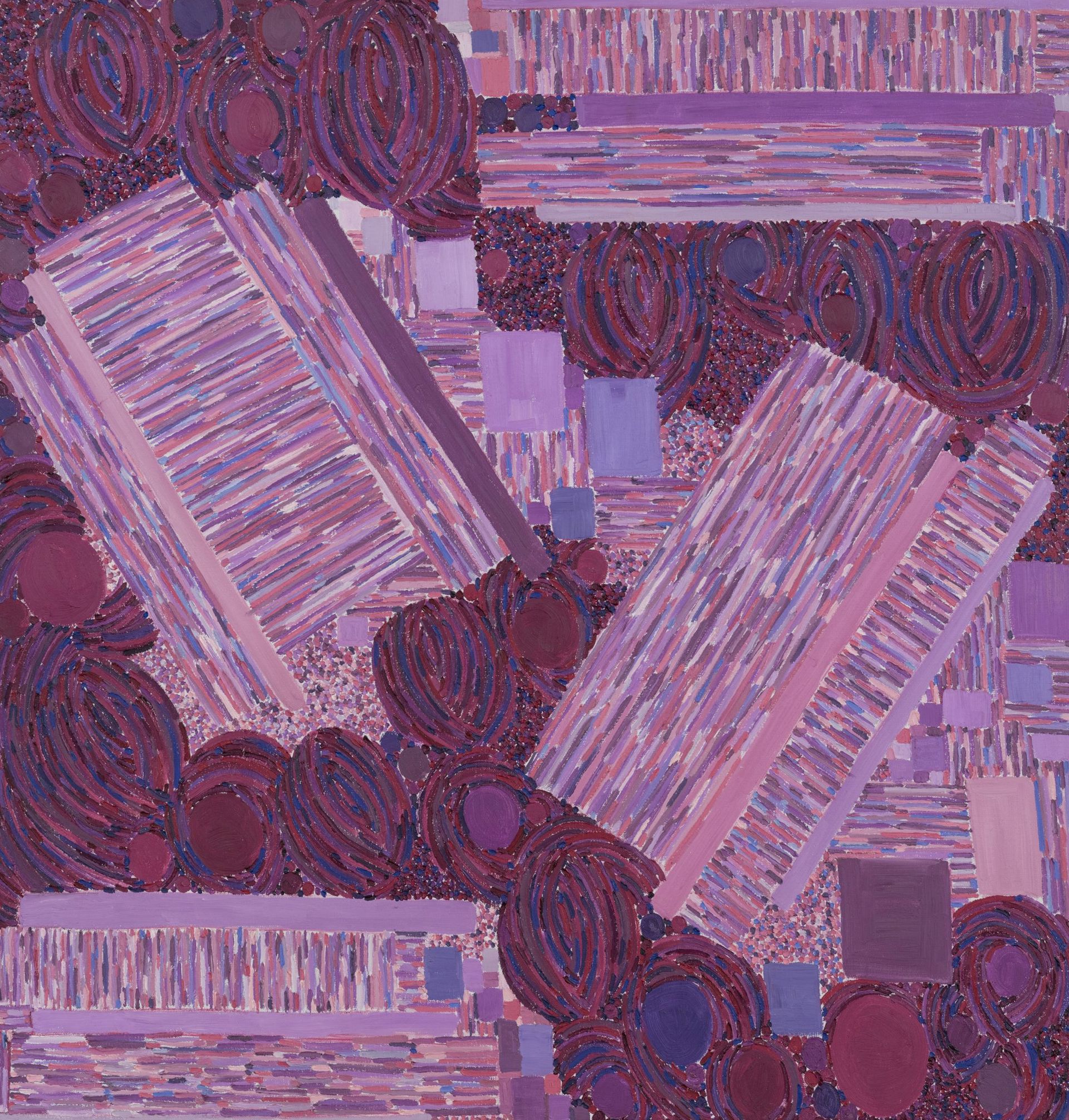 Lynne Drexler (1928-1999) Purpled, 1974 Signed, titled, and dated on verso: "Lynne Drexler / Purpled 1974" Oil on canvas 40 x 37 3/4 inches 101.6 x 95.9 cm © The Lynne Drexler Archive Courtesy Berry Campbell, New York