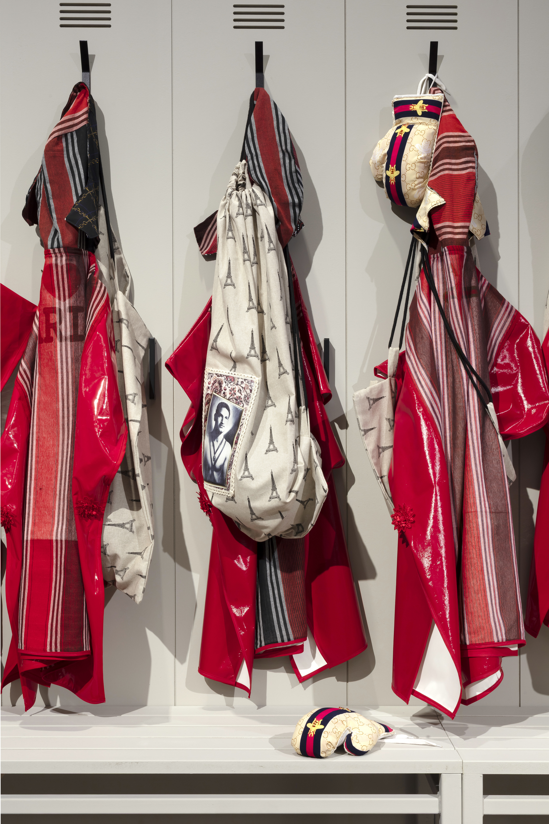 Per farlo, si avvale di quelli che definisce vêtements-images: abiti non pensati per essere indossati, ma per essere guardati — potenziali involucri per corpi che diventano opere. Dispositivi attraverso cui l’artista utilizza la stampa su tessuto e l’assemblaggio di materiali diversi, facendo del capo e della sua storia un supporto visivo e un veicolo di significato.