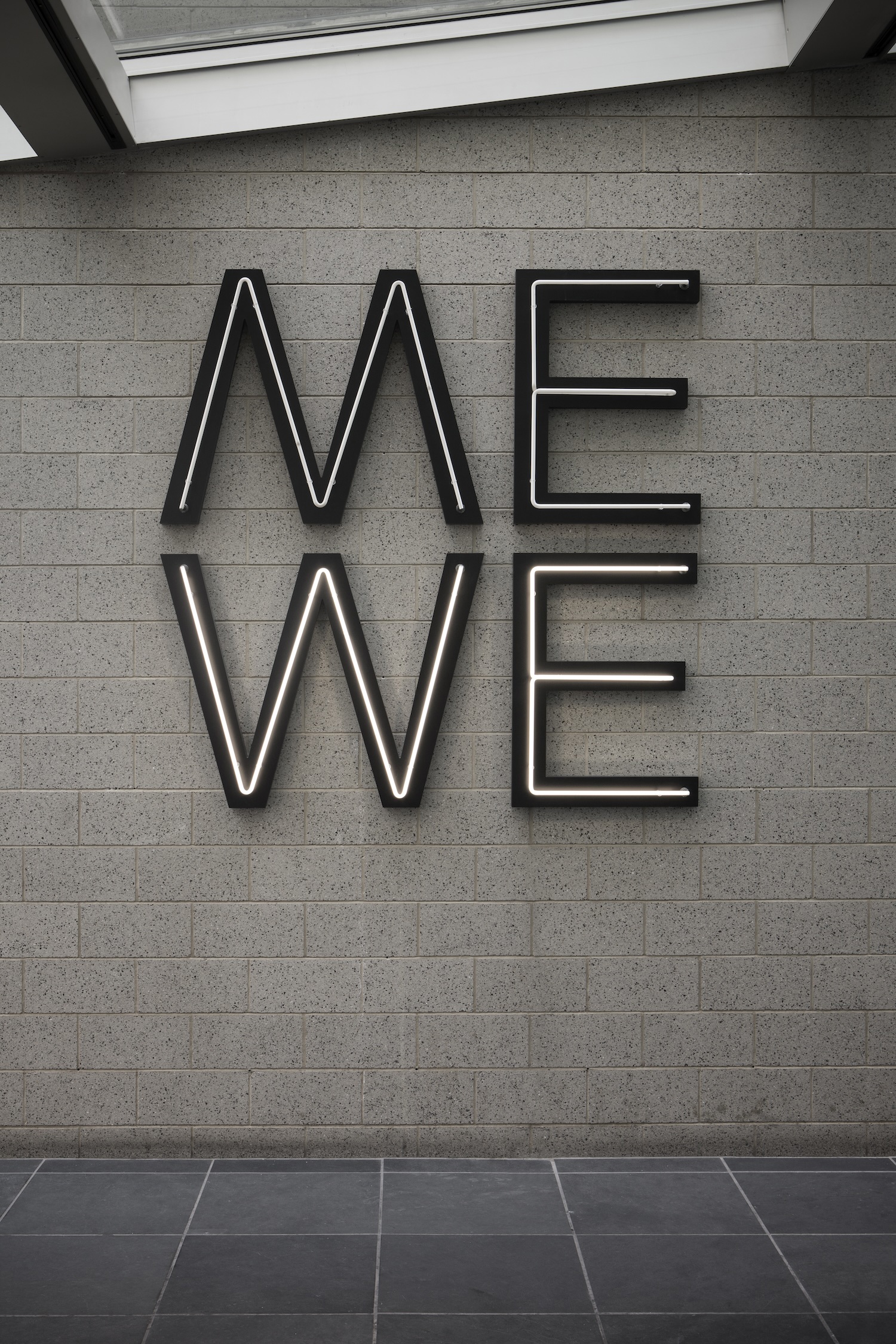 Sulla facciata sventolerà la bandiera nera, rossa e verde dell’artista afroamericano David Hammons: «Untitled» (2004) si ispira alla bandiera panafricana e dalla sua realizzazione funge da emblema del museo e della sua missione. Nella hall, invece, sarà appesa «Give Us a Poem» (2007) di Glenn Ligon (New York, 1960), un’installazione neon composta dalle parole «me» e «we» (io e voi), che riprende una poesia improvvisata del pugile Muhammad Ali.