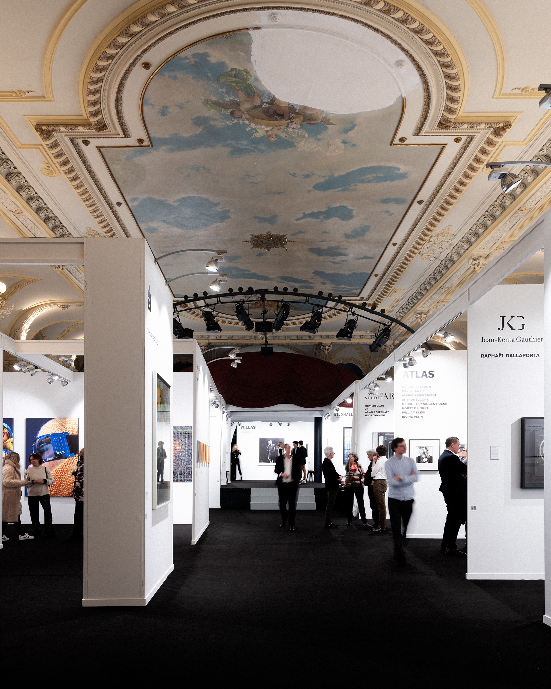 The second edition occupies the entire ground floor of the historic Hotel Reine Victoria (1875). Its Belle Époque interiors—painted ceilings, stucco details, chandeliers, and original mirrors—create a distinctive atmosphere that directly influences how works are presented. The setting encourages a more narrative, almost domestic mode of display, where art can be experienced in intimate dialogue with architecture. This year, the selection aligns fully with the broader MAZE vision: a transversal programme spanning periods and categories, moving beyond the more photography-focused first edition to offer a truly multidisciplinary experience.