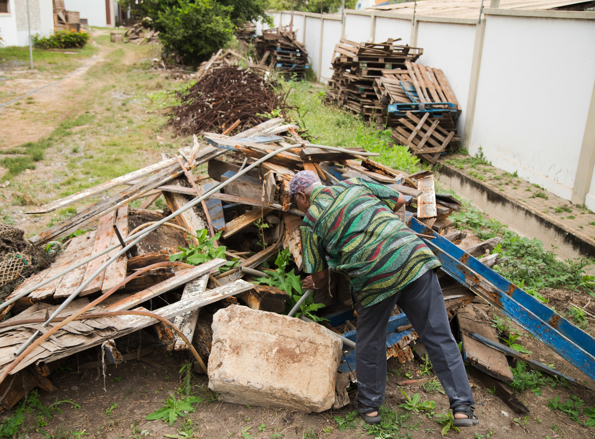 La Kwame Nkrumah University of Science and Technology (Knust) era un’emanazione dell’università Goldsmiths di Londra, per cui mi formai sulle pratiche artistiche occidentali. Eravamo però costretti a usare materiali come il gesso, o simili, che tuttavia a quel tempo non erano disponibili altrove in Ghana, per cui quando completai gli studi la prima sfida che dovetti affrontare fu quella dei materiali. Ho insomma assorbito in primo luogo gli insegnamenti di una formazione artistica occidentale, e dopo mi sono messo a cercare ispirazioni e fonti autentiche dentro la mia cultura. Volevo creare un linguaggio artistico unico, radicato nella storia del continente africano, per cui, attingendo allo stesso tempo sia a linguaggi della tradizione sia all’arte contemporanea occidentale, ho cominciato a cercare materiali e oggetti reperibili in zona: materiali cui potevo dar forma agevolmente e che mi parlavano del mio ambiente e della mia cultura. Ho imparato che l’arte nasce da qualsiasi situazione, e credo che gli artisti siano più avvantaggiati se lavorano con ciò che nasce nel loro stesso ambiente.