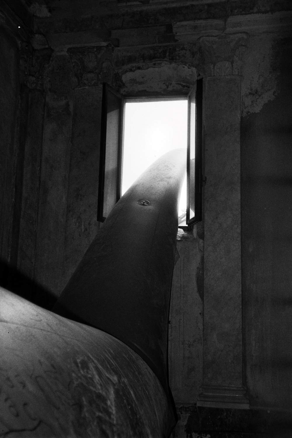 La serie «Abbandoni» di Mazzucchelli (Milano, 1939) nasce proprio con l’idea di dare in pasto al pubblico un prodotto ambiguo, ovvero non di diretta attribuzione artistica, e permettere che, in quanto tale, venga liberamente fruito. «Abbandoni» erano gonfiabili in Pvc di dimensioni importanti, come quello attualmente contorto dentro Spazio Volta, «Catena» (2021), un intestino sintetico bianco che sembra contenuto a stento nello spazio espositivo, «abbandonati», appunto, nello spazio pubblico. Le opere «in vetrina» continueranno a cambiare per tutta la durata della mostra, e ciascuna rimarrà esposta un mese.