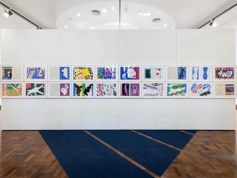 Un’immagine dell’allestimento delle tavole di Henri Matisse per il libro «Jazz» nella Biblioteca Mário de Andrade di San Paolo