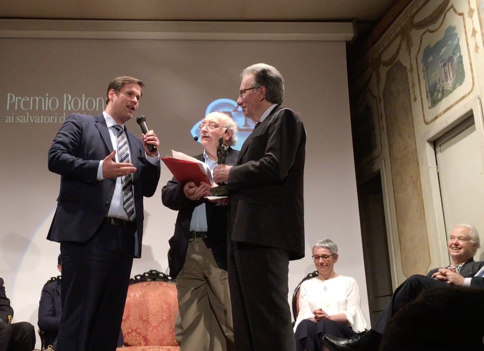 Il Premio Rotondi ai salvatori dell’Arte nasce nel 1997 da un’idea di Salvatore Giannella, giornalista e scrittore (da allora Giovanna Rotondi Terminiello ne presiedeva la giuria) e prende il nome dal soprintendente di Urbino (1939-49) Pasquale Rotondi, «un intellettuale che amava servire la cultura piuttosto che servirsene», nelle parole di Giulio Carlo Argan, e che coordinò l’Operazione Salvataggio dei principali capolavori dell’arte italiana (7.821 pezzi) nel Montefeltro marchigiano durante la Seconda guerra mondiale. Per l’occasione Bruschettini dichiarò: «Sono onorato di ricevere il premio che porta il nome di Pasquale Rotondi, una persona che ho molto stimato e ho avuto la fortuna di conoscere personalmente. È stato mio insegnante di Storia dell’Arte in I, II e III Liceo Classico e grazie a lui ho avuto il privilegio di visitare il cantiere di restauro della volta della Cappella Sistina nella seconda metà degli anni ‘80. Ricevere un premio nazionale, riservato a chi si dedica alla storia dell’arte e si impegna a preservarla e promuoverla, rappresenta un riconoscimento di grande valore nel mio percorso di vita e di studi”.