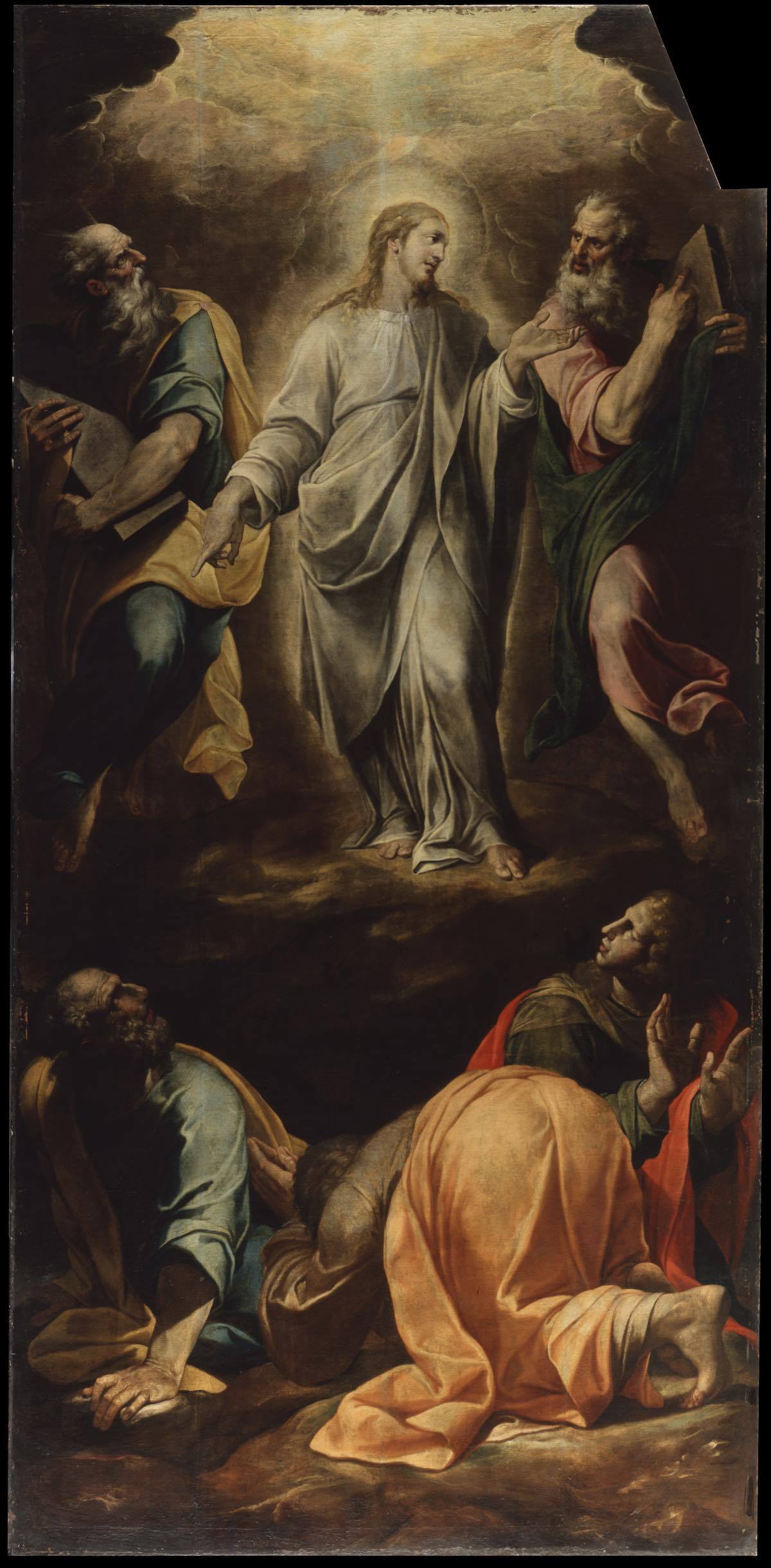 La «Trasfigurazione» di Procaccini riproduce una scena tratta dal Vangelo di Matteo, in cui tre discepoli accompagnano Gesù su una collina in lontananza; giunti sul posto, vedono Gesù, avvolto da una luce celeste, levitare sul terreno, con le figure di Mosè ed Elia. L’episodio è generalmente interpretato come una premonizione della Resurrezione. Qui Procaccini, che realizzò alcune versioni della «Trasfigurazione», tra cui alcune incisioni, aggiunge un quarto discepolo nella composizione.