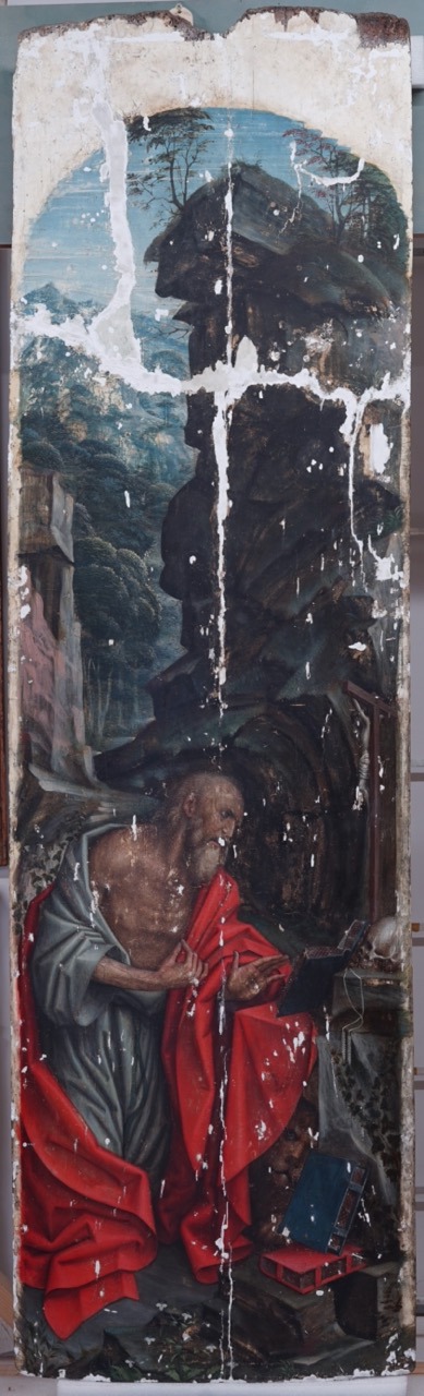 Polittico di Defendente Ferrari, pannello centrale con san Gerolamo dopo la stuccatura, Torino, Palazzo Madama