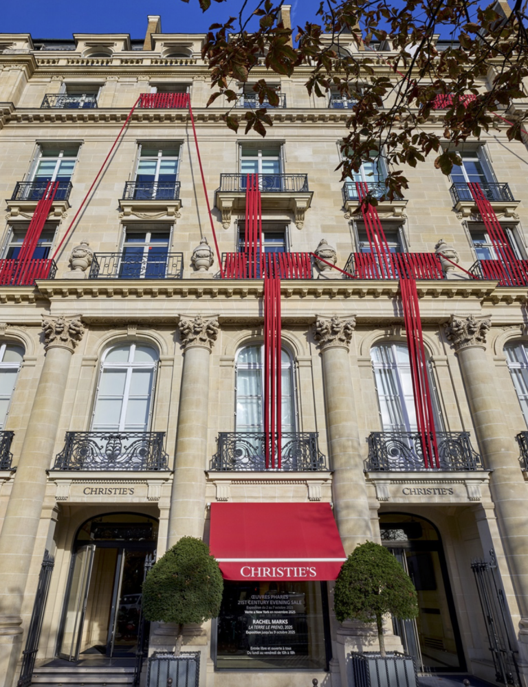 Leggi i suoi articoliC'è un filo che attraversa le cose. Sottile e potente. Capace di legare storie, mani, oggetti e tempo. È questo il filo che Stéphane Thidet ha scelto come protagonista della sua installazione «Le Fil Rouge» sulla facciata di Christie’s a Parigi, visibile fino all’11 gennaio 2026. Perché chi passeggerà davanti al 9 di Avenue Matignon, all’ingresso di un’arteria ormai epicentro del mondo dell’arte parigino, non si limiterà a vedere un edificio. Percepirà un gesto, un ritmo; un segno che collega passato e presente in quell’edificio che racconta una storia di sartoria e successo.