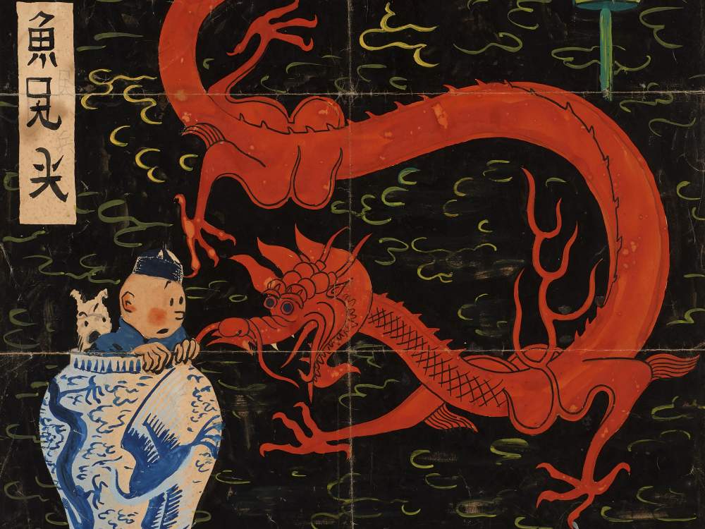 Un particolare dell’acquarello di Hergé (Georges Remi) per l’album «Les Aventures de Tintin reporter en Extrême Orient, Le Lotus Bleu» (1936) venduto per 3,2 milioni di euro da Artcurial