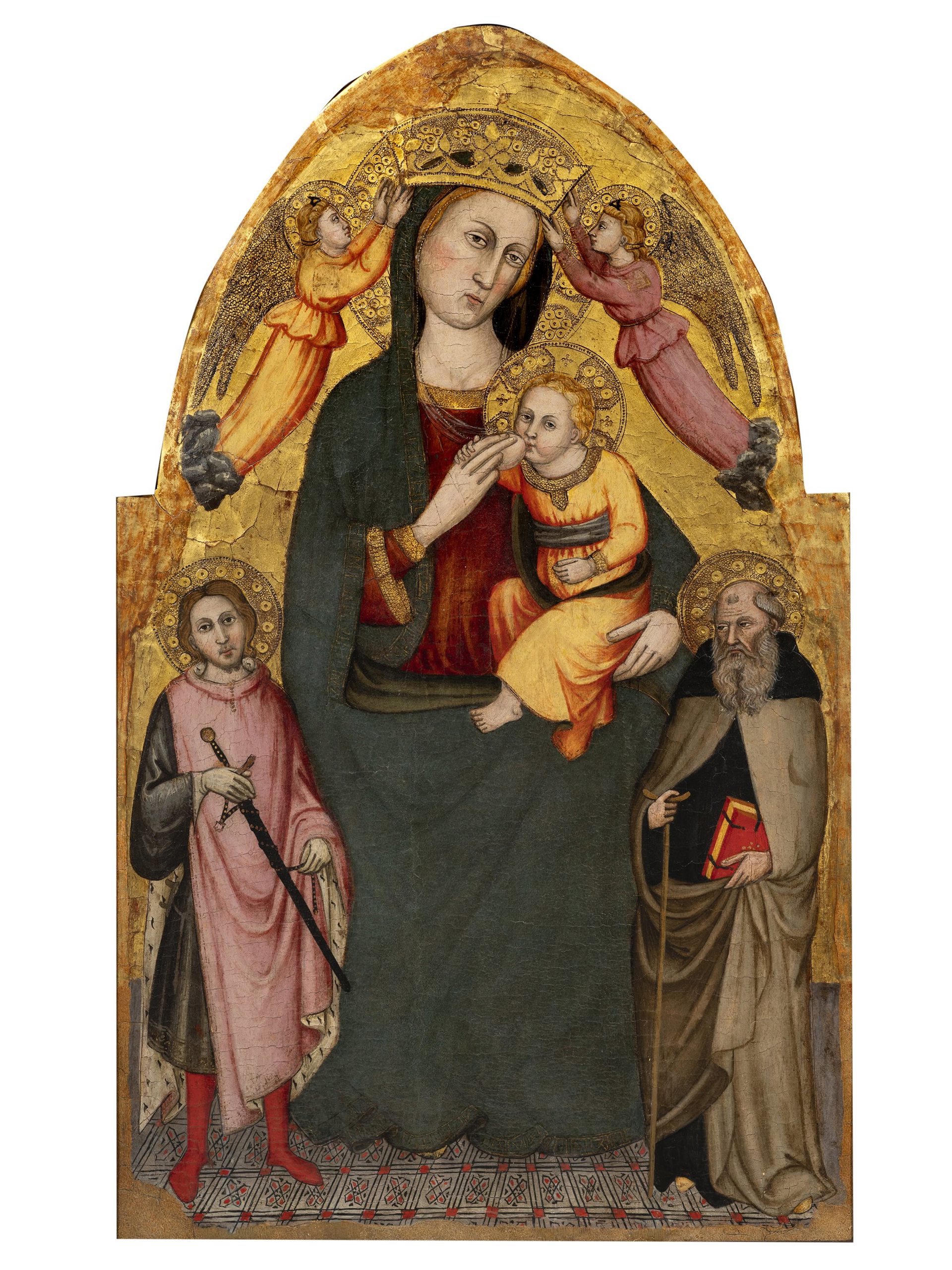 Giovanni di Tano Fei, «Madonna con il Bambino in trono incoronata da due angeli tra i Santi Giuliano l’Ospedaliere e Antonio Abate». Courtesy of Tornabuoni Arte