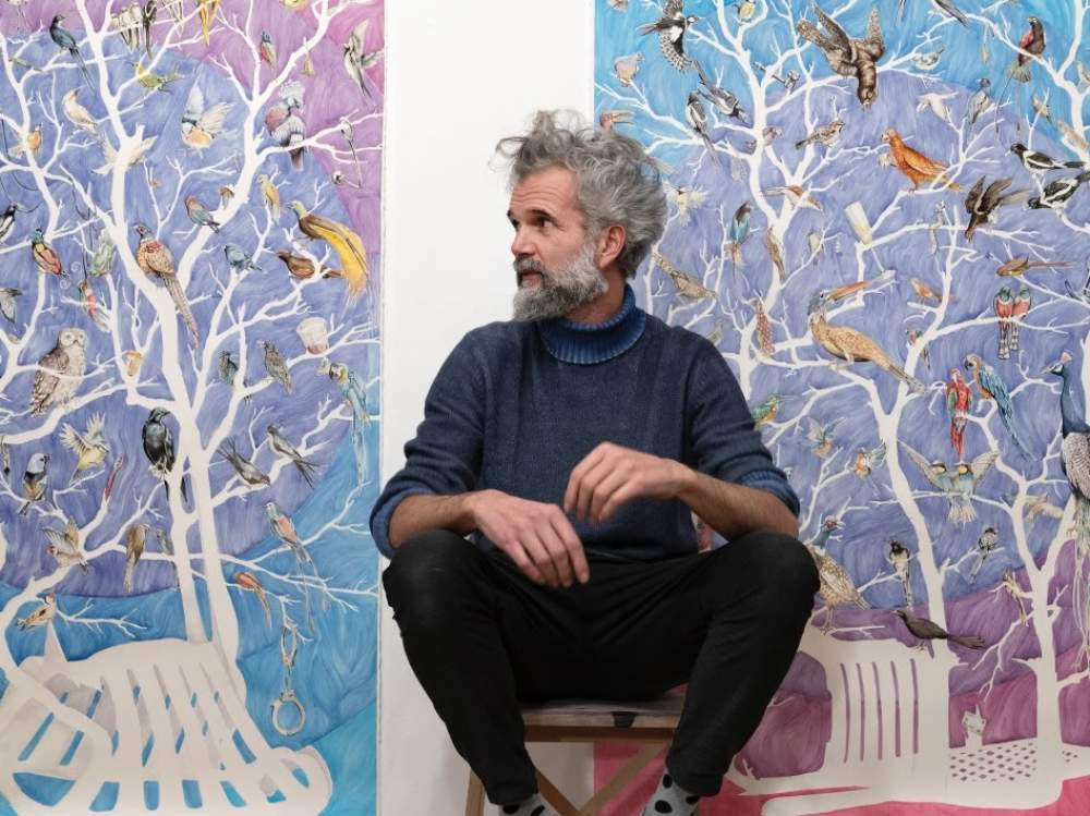 Dopo Alek O. (nel 2018), Valentina Ornaghi e Claudio Prestinari (nel 2019), Diego Perrone (nel 2020, in versione virtuale), Giovanni Ozzola (nel 2022), quest’anno è la volta di Eugenio Tibaldi. Piemontese, classe 1977, autore di La forma spezzata, libro d’artista, favola per bambini e ragazzi (Allemandi 2023), propone per questa edizione un parallelismo fra gli animali che popolano le profondità del mare e quelli che abitano il cielo, combinando il tutto con il concetto di empatia, trasformazione, crescita e collettività.