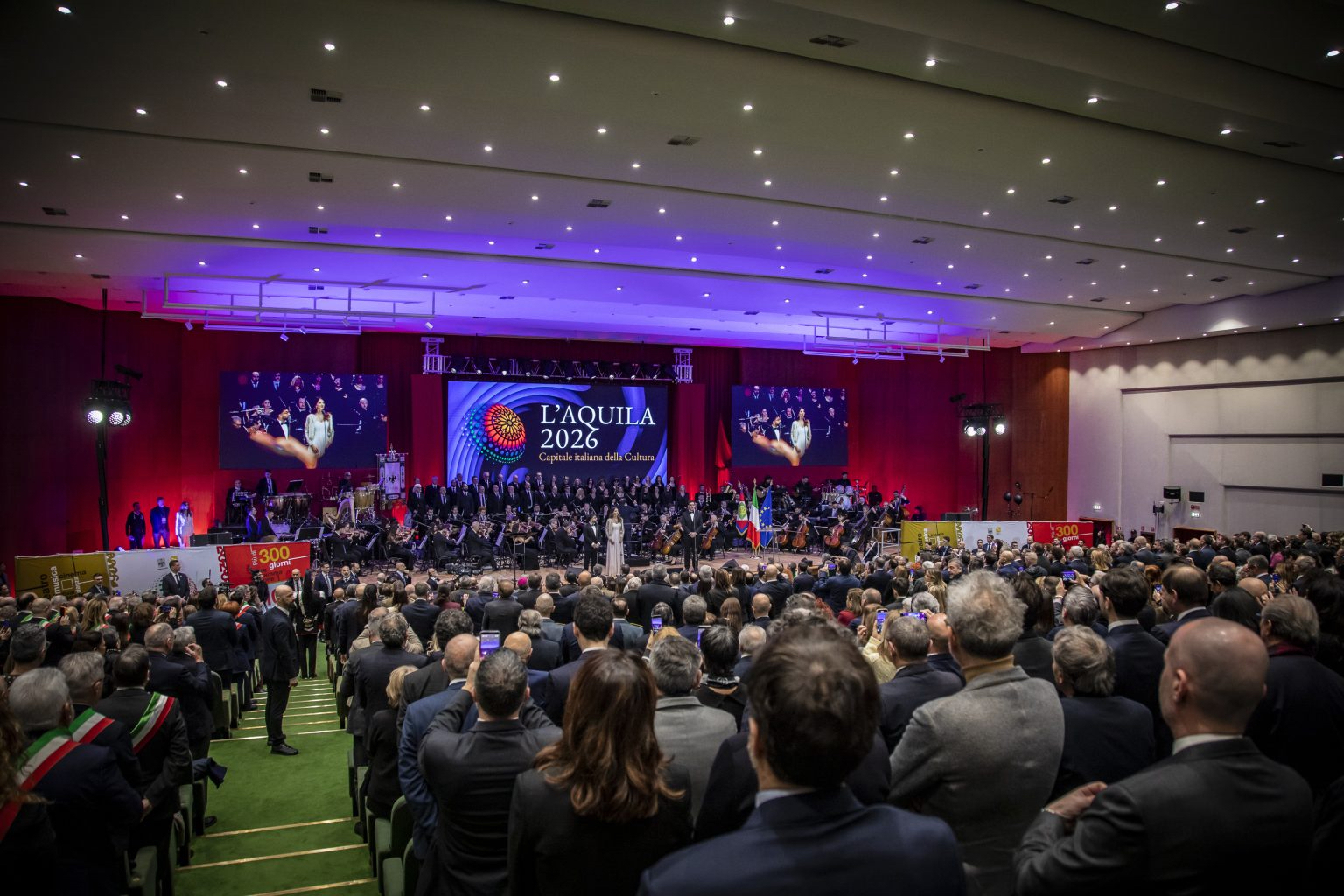Il ministro della Cultura Giuli ha parlato di «una scommessa vinta da una comunità operosa, grazie a una visione collettiva sicura di sé. L’Aquila è già da tempo immemore una capitale della cultura e ha trovato in Rieti una città federata». Giuli ha, poi, ricordato gli oltre trecento eventi che si susseguiranno nel 2026, punto di arrivo di un percorso iniziato molto tempo fa. Spiega il ministro: «L’’assidua cura del cratere sismico era iniziata già quando ero a capo del MaXXI ed è continuata ora che sono alla guida del ministero. L’Aquila confermi la vocazione a esprimere il senso profondo della missione pubblica insieme alla concordia privata». In queste ore, il Ministero della Cultura coglie l’occasione odierna per annunciare il ruolo de L’Aquila come laboratorio nazionale nell’avvio del primo osservatorio culturale urbano in Italia, allo scopo di misurare in modo sistematico l’impatto delle politiche culturali su benessere, coesione sociale, attrattività e sviluppo. Nel corso del suo intervento, il sindaco de L’Aquila, Biondi, ha ricordato il valore pacificatore della cultura, citando lo scrittore abruzzese Ignazio Silone, per il quale «L’arte è un fiore selvaggio, ama la libertà». L’illustrazione del concetto di «Città multiverso» è stato affidato a Pietrangelo Buttafuoco, presidente della Biennale di Venezia, che ha definito L’Aquila «una città laboratorio, officina operosa verso gli innumerevoli domani».